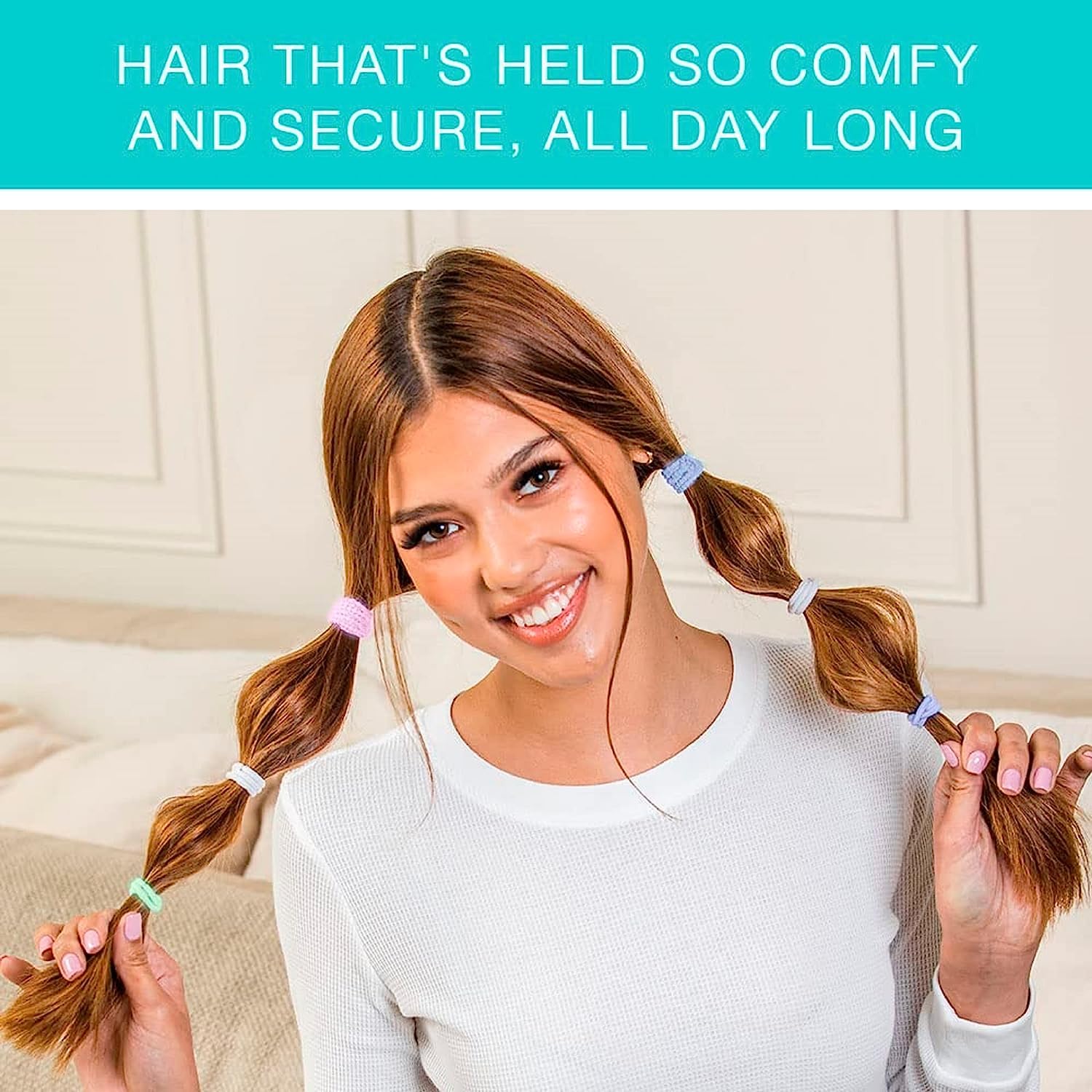 - ELASTIC NO-DAMAGE HAIR TIES: This multicolor selection of medium elastics are gentle on hair but high on style. They won't snag or break strands or leave unsightly “bumps” for a comfortable all day hold.