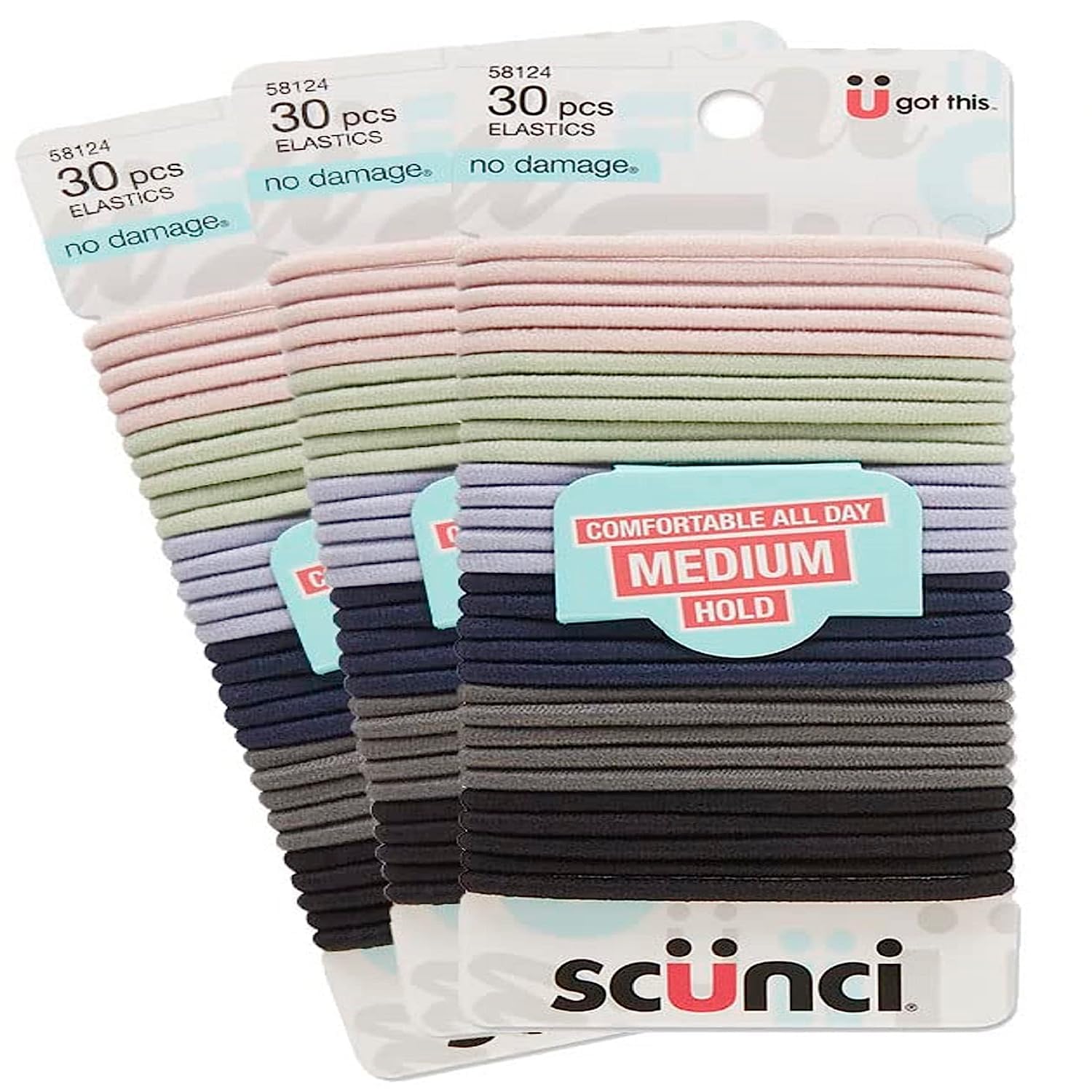 - Original Ponytail Holders – Scünci® No-Damage® Medium-Hold Elastic Stretch Nylon Hairbands in Assorted Pastel, Bright, and Neutral Colors (Colors May Vary), 30 Count (Pack of 3) by Conair