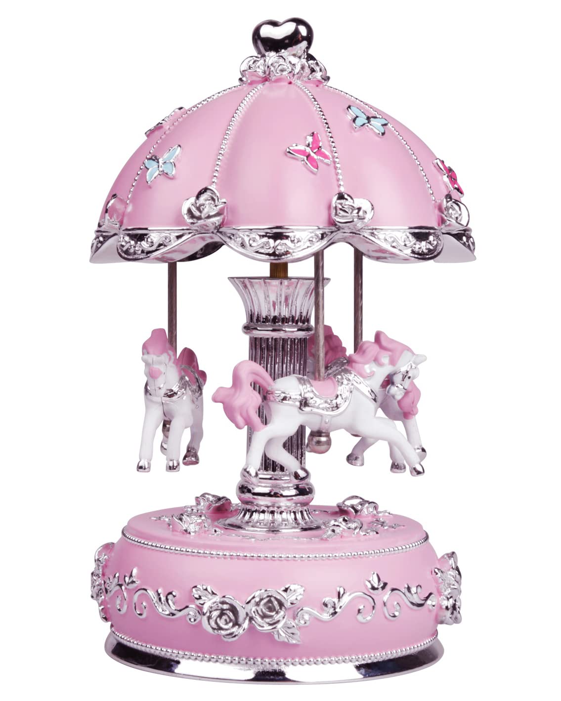 - Color Changing Carousel Music Box and Rotating Horse. With a simple wind-up the carousel horse rotating while the musicbox plays music tune, then turn on the switch, the horses in the colorful dreamy lights and see the magic working
