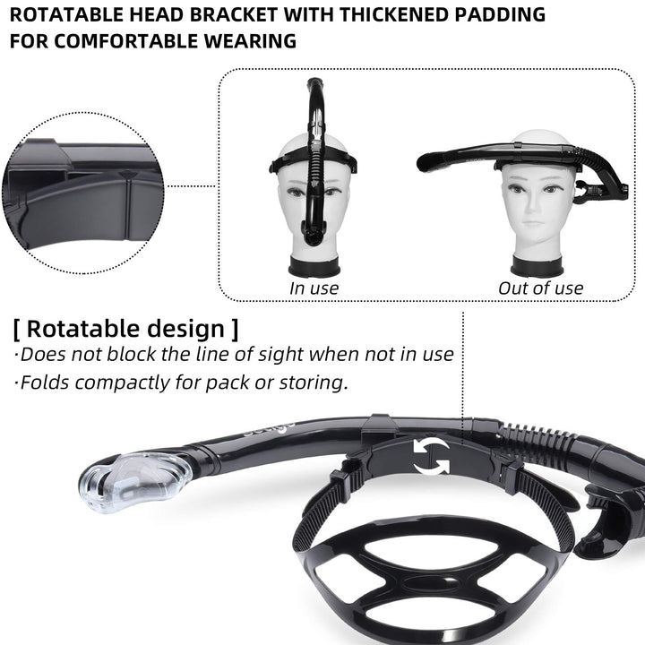 - Comfy Pad & Rotatable Design - Engineered thickened head-pad sits firmly on head delivers comfort and eliminate movement when flip turns and all four strokes.Quick adjustable universal fit padded head strap designed to securely and comfortably stay in place with every swim exercise, eliminating headaches and pinching. Unique Rotatable design: when you rest, you can rotate the tube to the side without obstructing your sight.