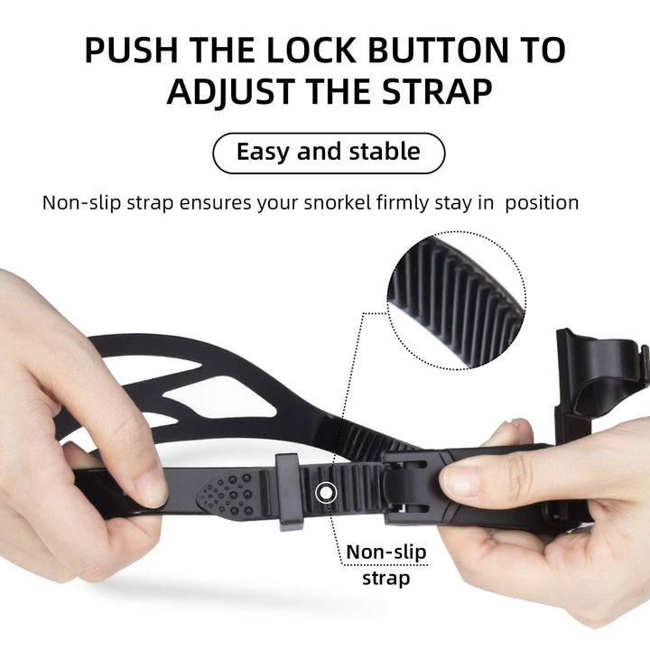 - Advanced Top Dry Valve and Splash Guard- Seago dry snorkel profiled “paddle” dry top automatically closes when submerged, not allowing water entry. Unlike the float ball valve which gets lodged easily by small sands or kinds of stuff, our new design valve won't be stuck, which give you comfortably breath. Just focus on swimming!