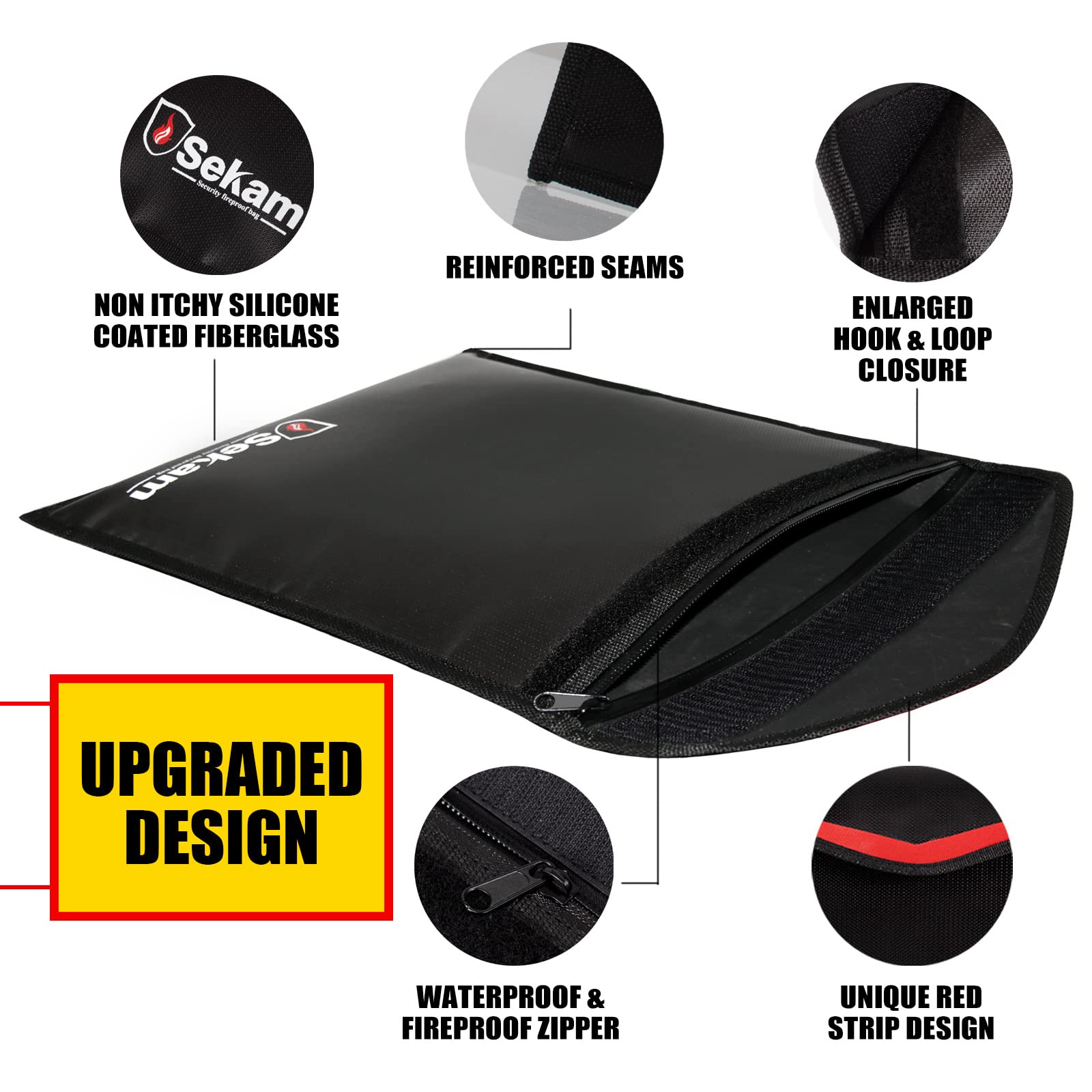 - Original Safe Accessories – 2-Pack Fireproof Document Bag (15 x 11 inch), Fireproof Money Bag, Fireproof Envelope Cash Bag, Waterproof & Fire Safe Bag for A4 Documents, Legal Size Document with Zipper & Hook & Loop Closure by SEKAM