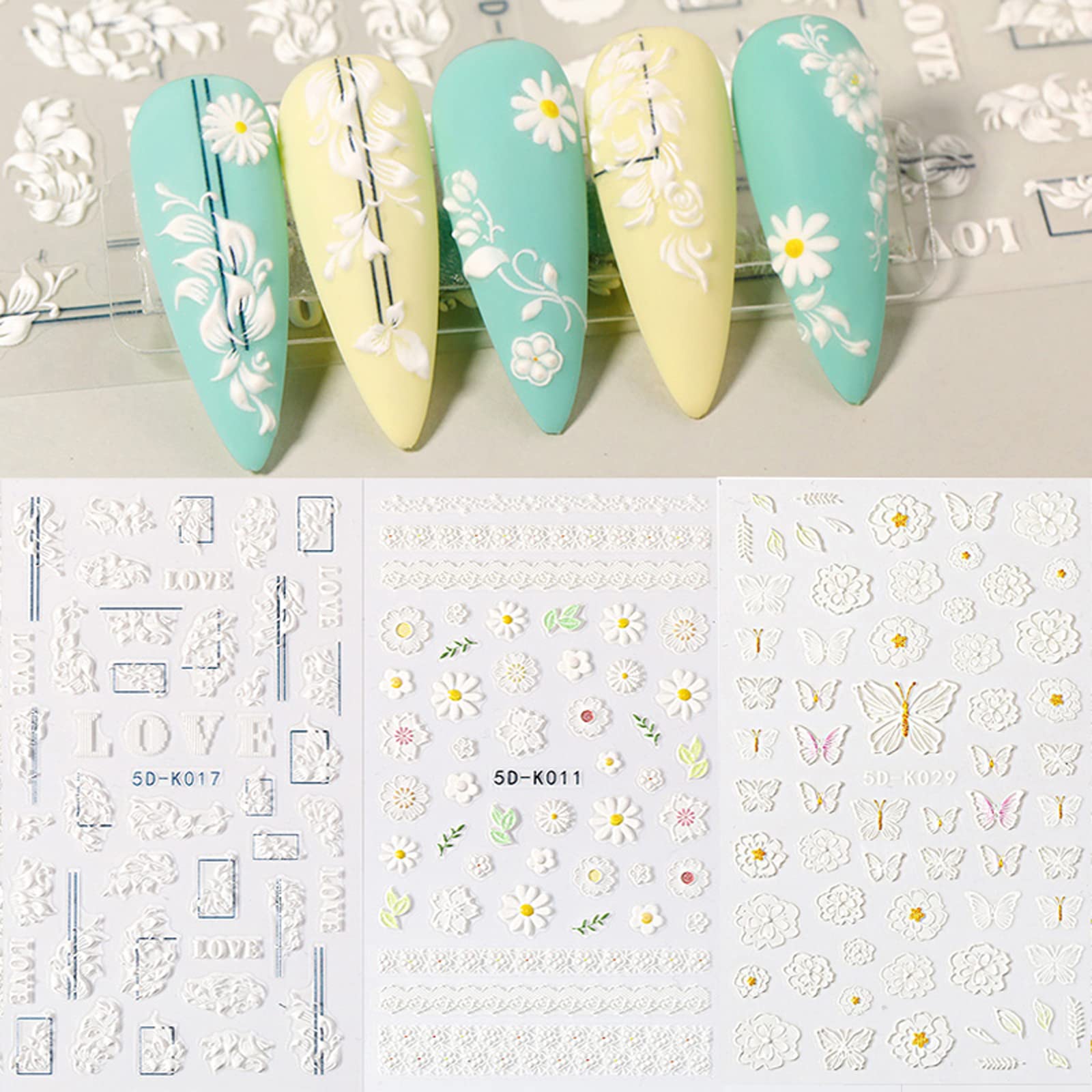 - Original Stickers & Decals – Self-Adhesive Nail Art Stickers - 5D Stereoscopic Embossed Nail Decals Nail Decorations Creative DIY Nail Sticker Include Flower Nail Decor Stickers,Butterfly Nail Stickers,Etc.3 Sheets by NA