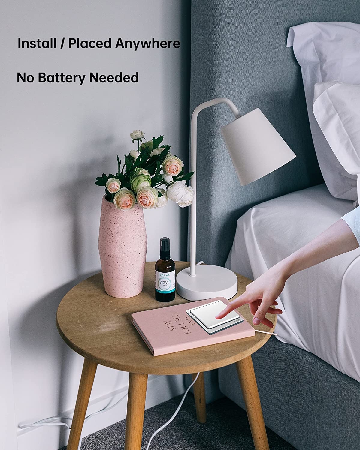 - Self-powered Wireless Light Switch - The wireless switch do not require batteries, which is by collecting the micro kinetic energy of the pressing action and converts it into electrical energy to emit radio signals, you only need to press the switch to send a steady signal to the receiver, environmentally friendly, safe for children.