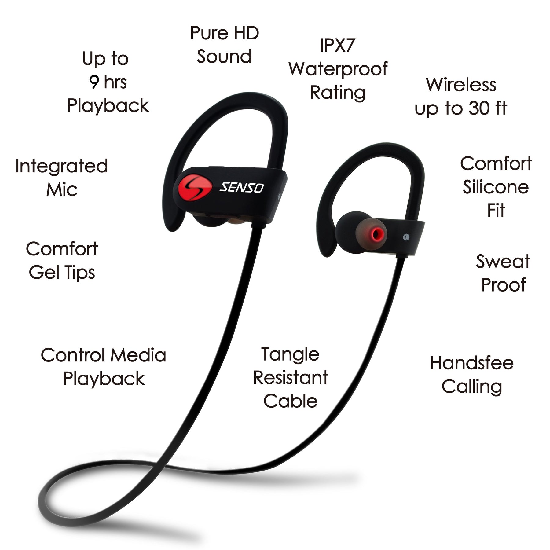 - Original Earbud Headphones – Bluetooth Headphones, Best Wireless Sports Earbuds w/Mic IPX7 Waterproof HD Stereo Sweatproof Earphones for Gym Running Workout Noise Cancelling Earphones Earbuds Noise Cancelling Headsets by Senso