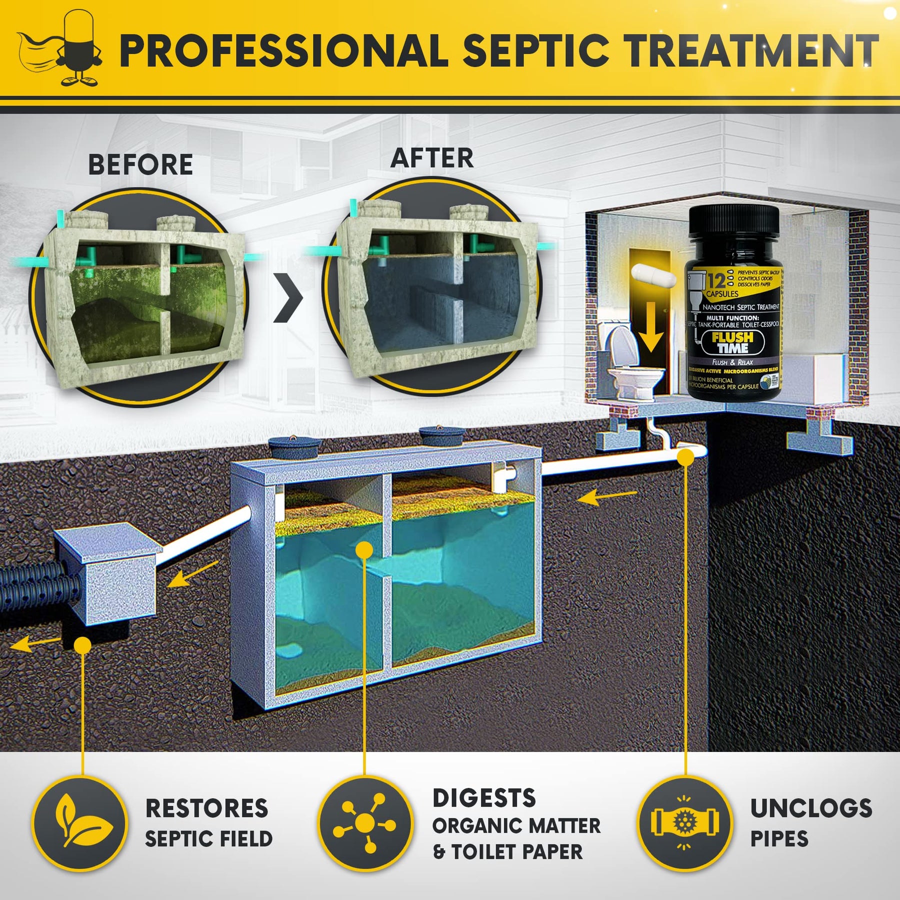 - Original Septic Treatments – Septic Tank Treatment Pods Alt, 1 Year Supply, Cesspool Treatment, Septic Bacteria, Septic System Treatment, Septic Field Rejuvenator, Odor Control, Safe Dissolvable Easy Flush, Made In The USA by FLUSHTIME