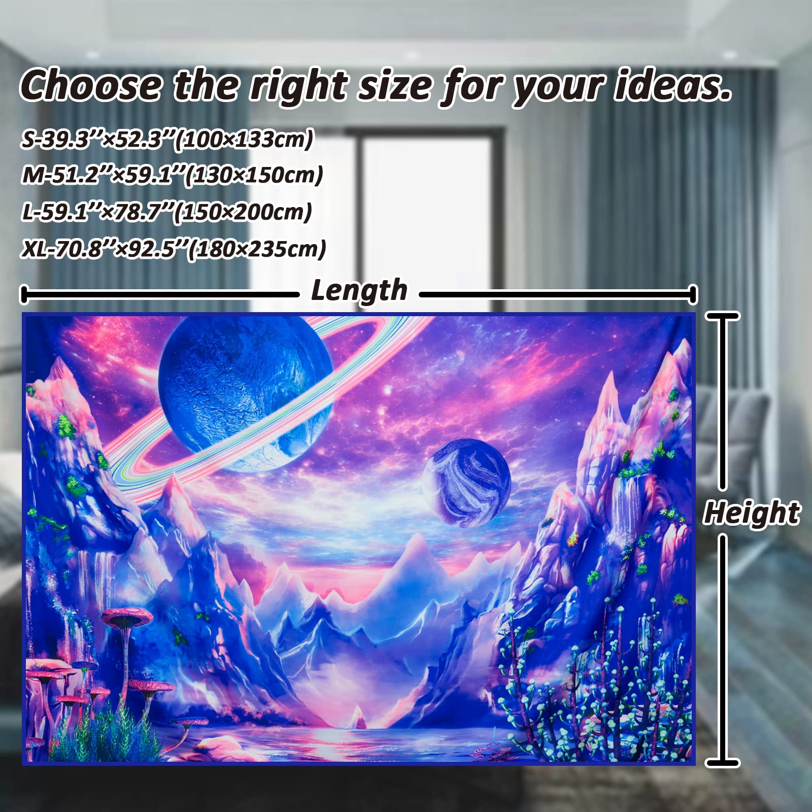 - Original Tapestries – Blacklight Planet Tapestry UV Reactive Galaxy Space Tapestry Mountain Black light Tapestries Neon Aesthetic Tapestry for Bedroom Living Room (51.2 × 59.1 inches) by Serborlur