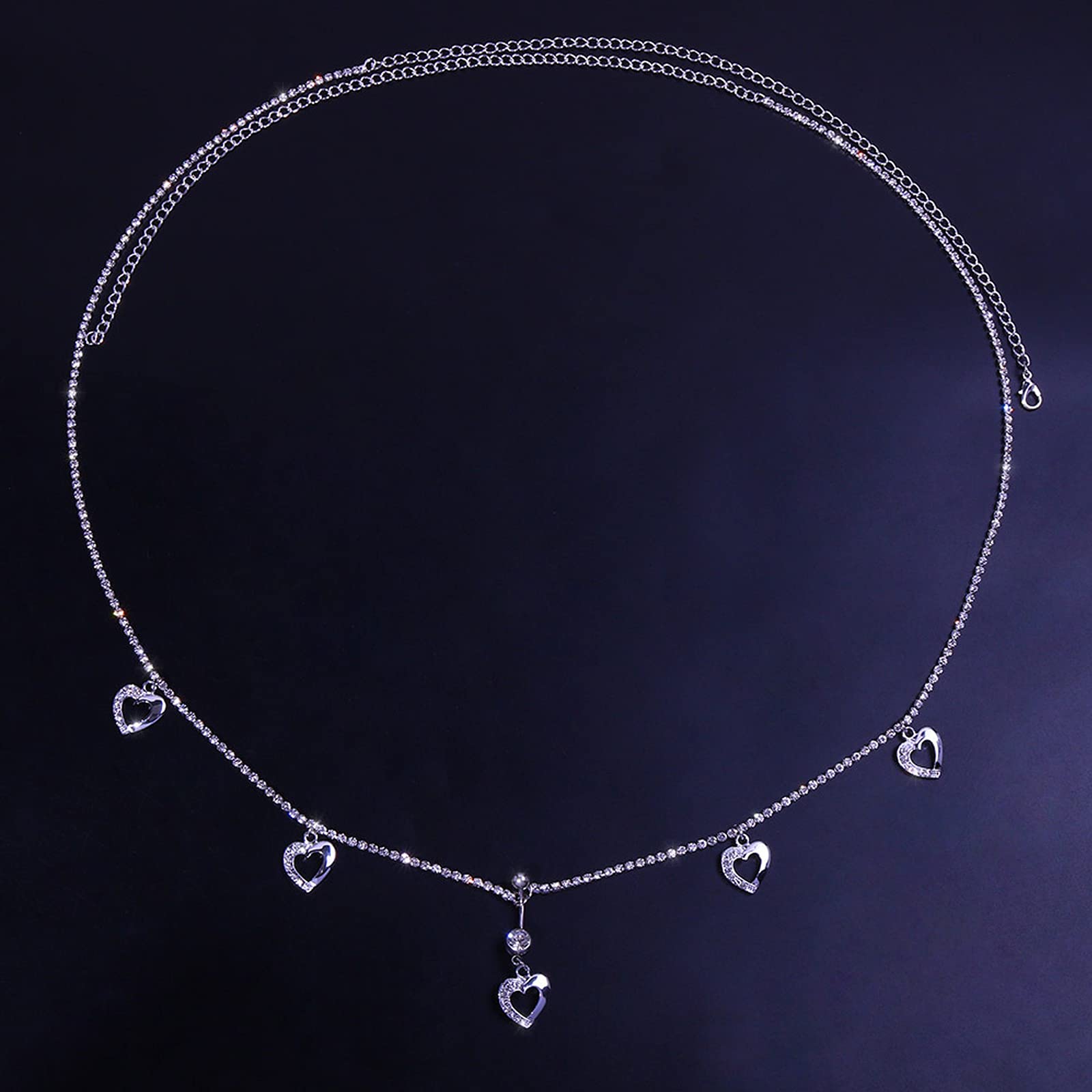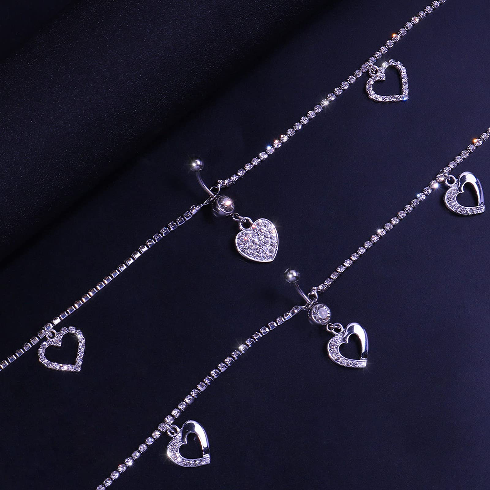 - Women rhinestone dangle belly button ring chain is made of rhinestone and alloy. This waist chain with heart pendant design.