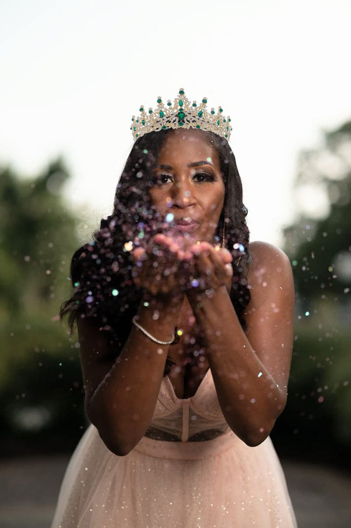 - The princess crown is designed and encrusted with sparkling clear round cut rhinestones and handmade crystals, not only sturdy, but also gorgeous. When you wear this crown, your fairy dream come ture