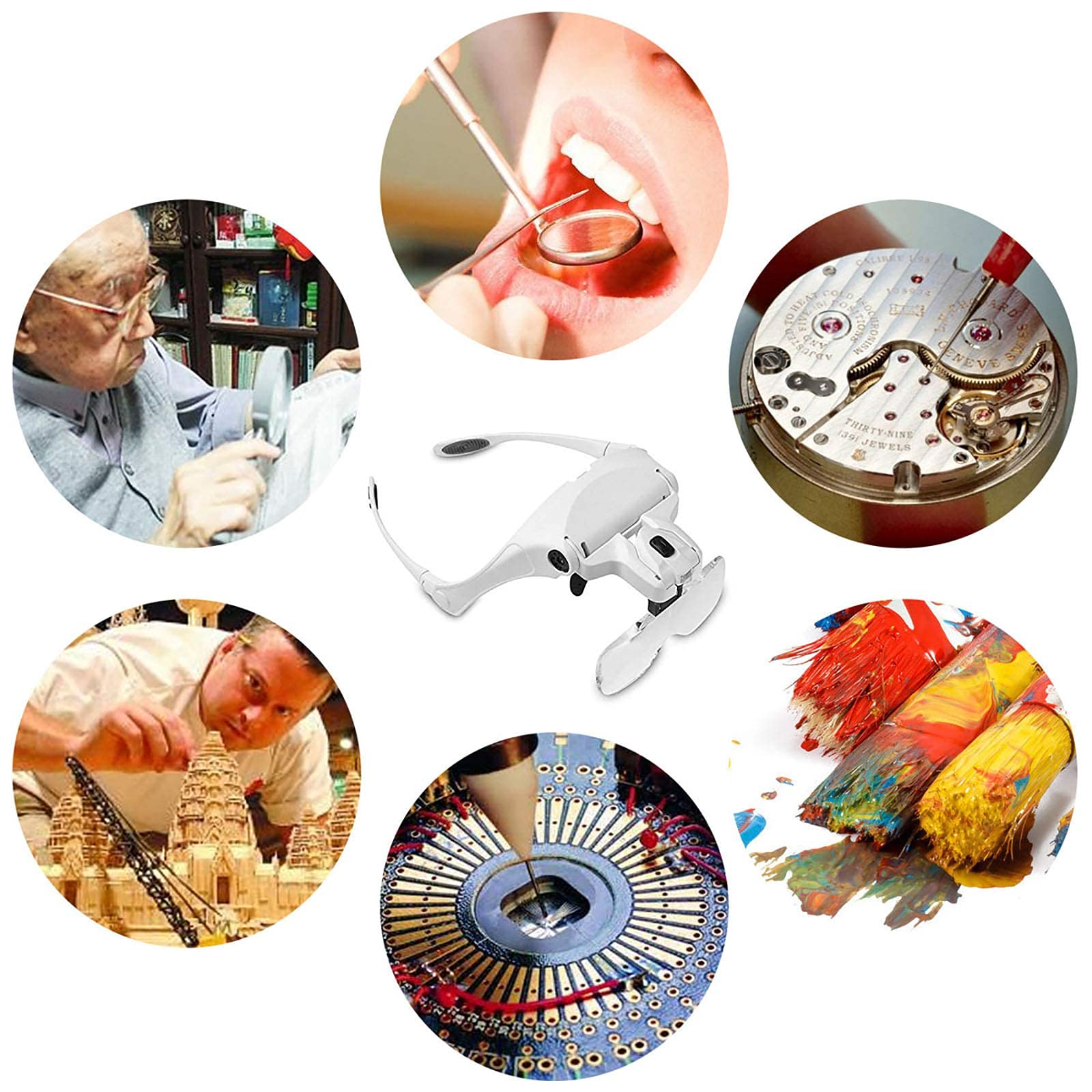 - Original Categories – Magnifying Glass with Light, Head Mount Magnifier Headband Magnifier Glass Interchangeable Headband and 5 Lenses for Close Work Watch Jewelry Embroidery by SH-RuiDu