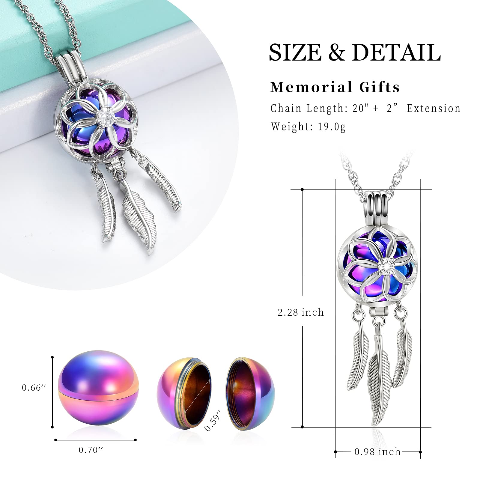 - Material316L stainless steel, It is composed of flower ball and Angel wing, special dream catcher urn design and exquisite craftsmanship, elegant and fashionable, makes you more attractive.