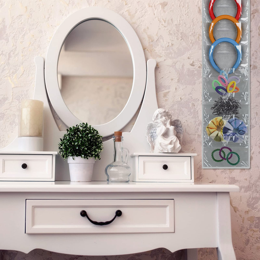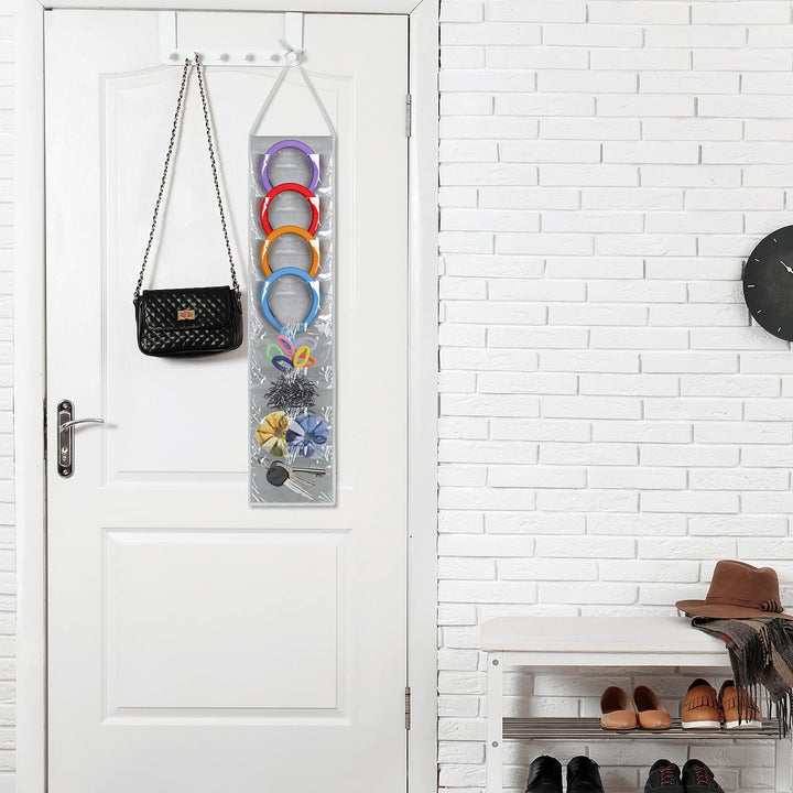- Original Jewelry Organizers – Headband Holder,Hanging Headband Storage Organizer Women, headphone organizer classroom Hair Accessory Holder with PVC Clear Pockets(8.7 inches,Gray) by Shappy