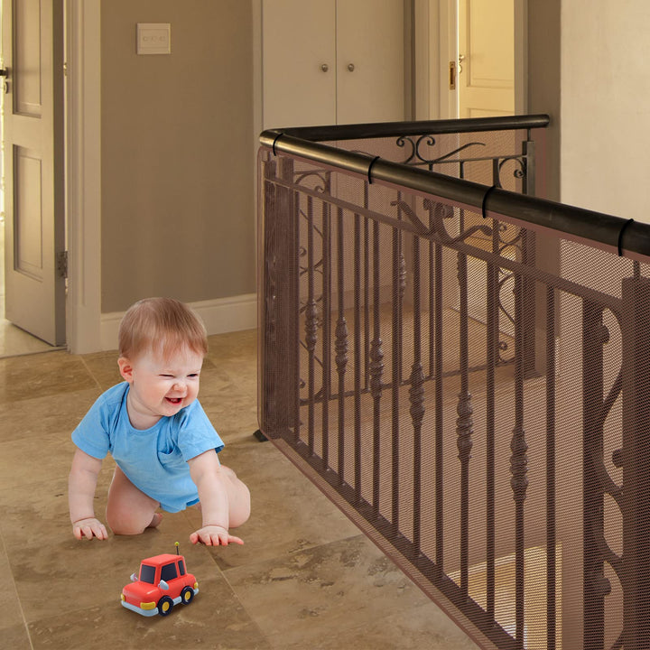 - Original Door & Stair Gates – 2 Sets Brown Baby Banister Guard, Kids Safety Stairway Net Child Rail Balcony Banister Net Proofing Pet Stair Railing Mesh Guard, Outdoor Toy Toddler Puppy Safe Stair Netting(20 x 3 Feet) by Shappy