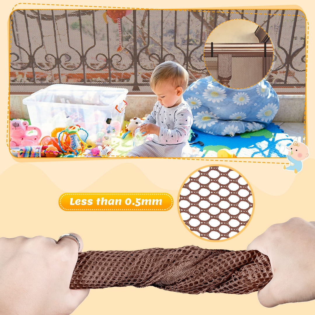 - Easy to Store: the mesh banister guard is comfortable, soft, foldable, and does not take up much space; More importantly, it can be applied for a long time, windproof and waterproof, it can be applied indoor and outdoor - kids' crib, stairway, corridor, deck, balcony, etc. to keep kid safety, toy safety, and pet safety