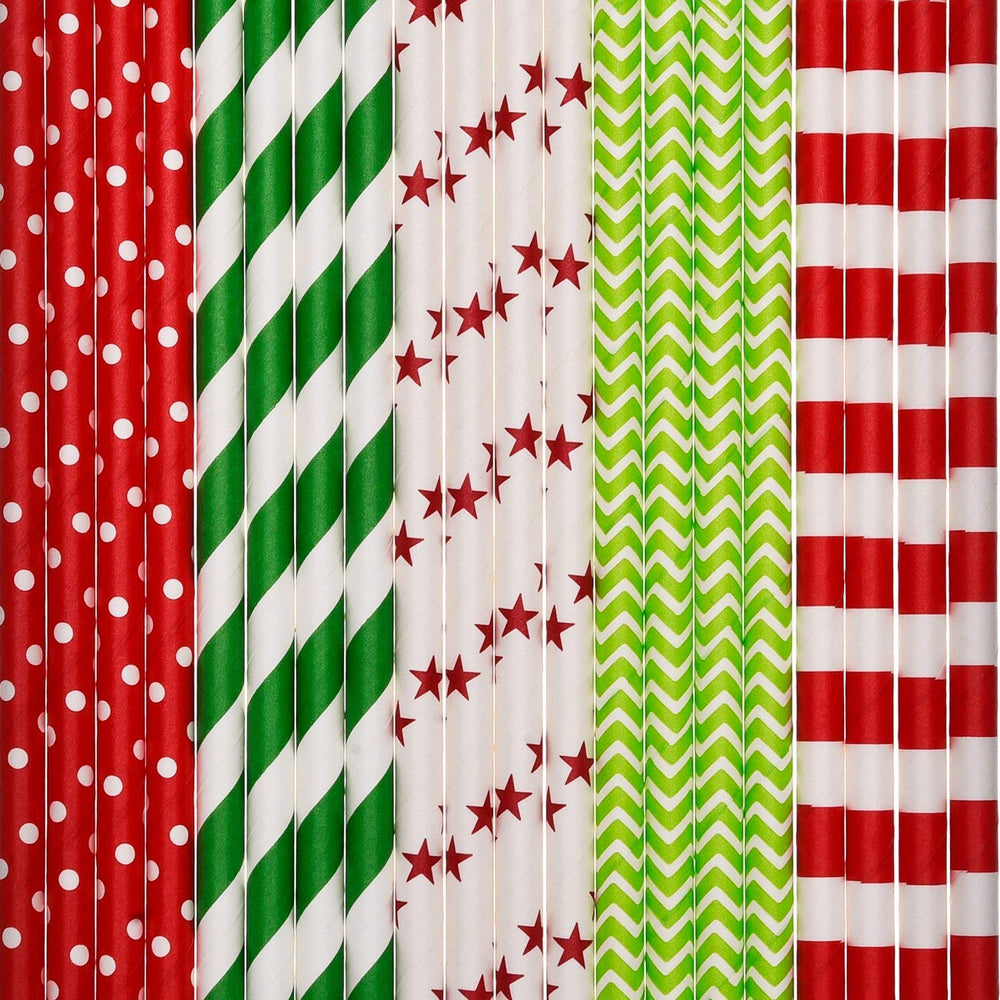- Original Straws – Paper Straws Decorative Drinking Straws for New Year, 125 Pieces, Multi Patterns, Green and Red by Shappy