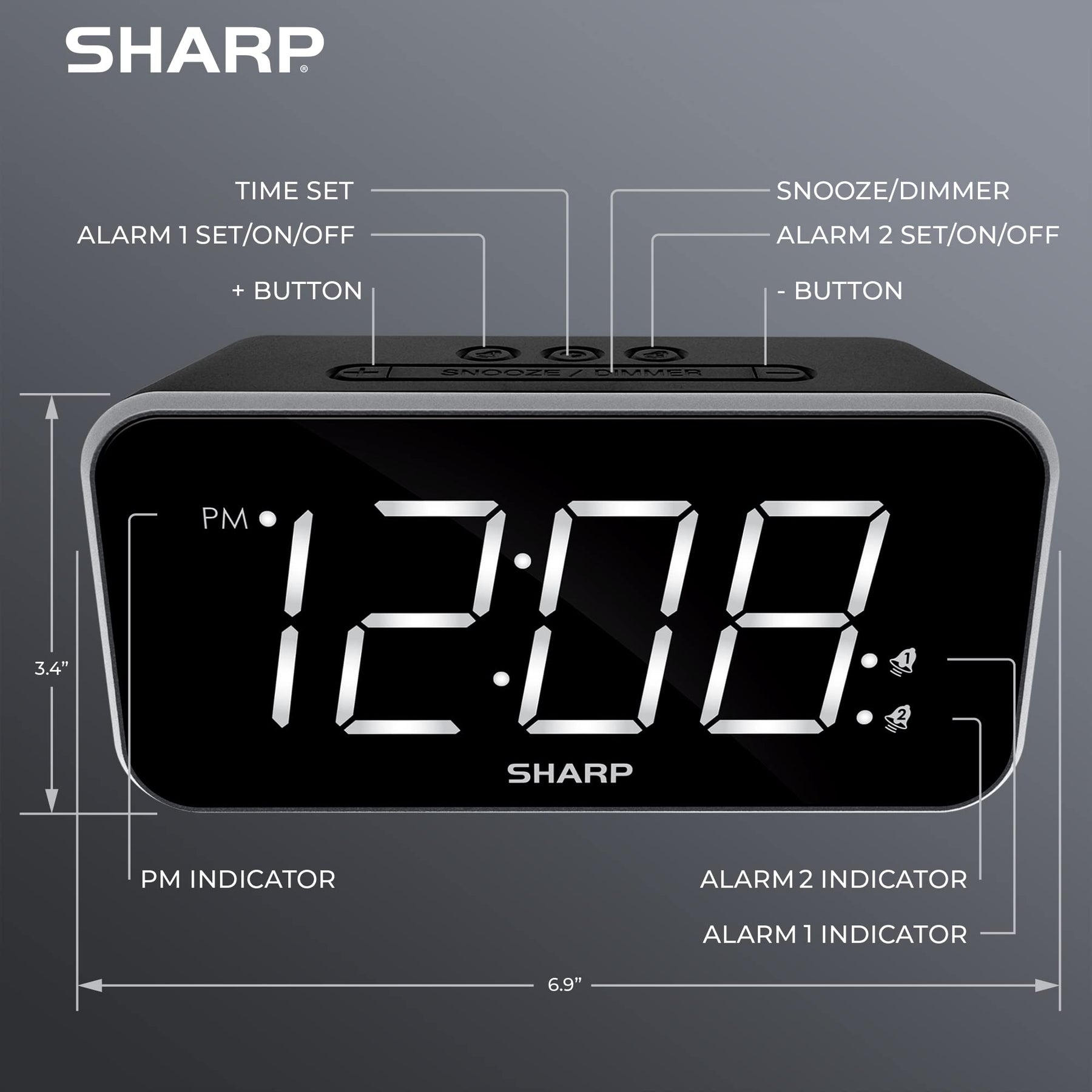 - Original Alarm Clocks – Alarm Clock Jumbo Easy to Read Display – 3 Step Dimmer Control – Dual Alarms, Battery Back-up, Black with White LED by Sharp