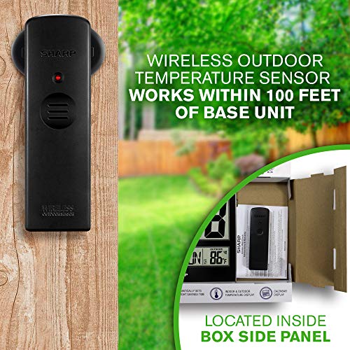 - Original Wall Clocks – Atomic Clock - Never Needs Setting! - Jumbo 3 Easy to Read Numbers - Indoor/Outdoor Temperature Display with Wireless Outdoor Sensor - Gloss Black by Sharp
