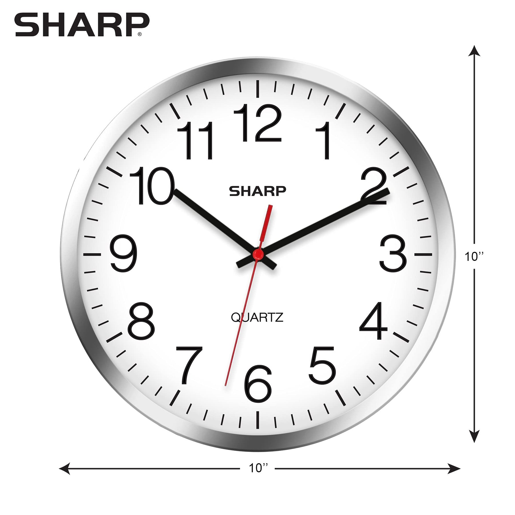 - Original Wall Clocks – Wall Clock – Silver/Chrome, Silent Non Ticking 10 Inch Quality Quartz Battery Operated Round Easy to Read Home/Kitchen/Office/Classroom/School Clocks, Sweep Movement by Sharp