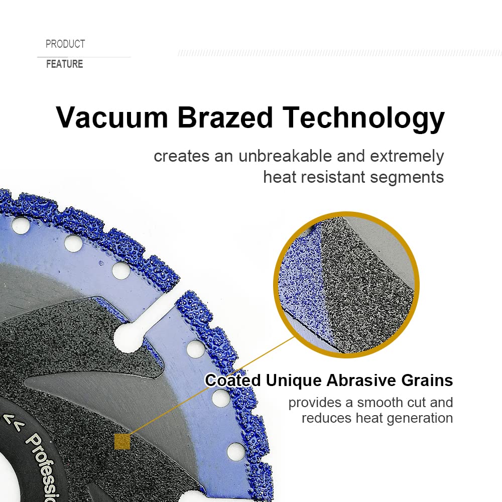 Vacuum Brazed Technology, the industrial premium diamond grains are permanently brazed to the edge of steel core creating an unbreakable and extremely heat resistant segments.
