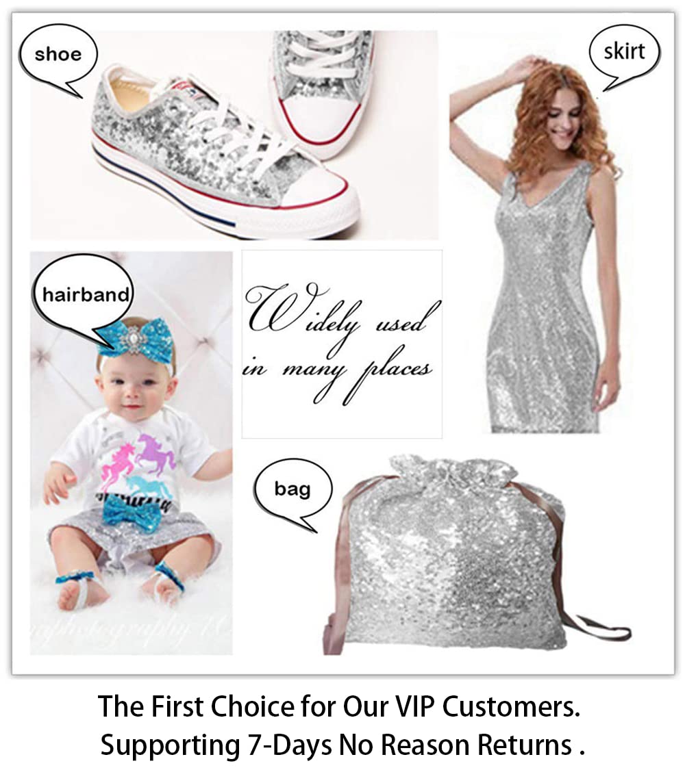 - Sequin Fabric: Made of high density sequin fabric, 3mm round sequins are embroidered on polyester mesh, the sequin fabric is shiny and sparkle.