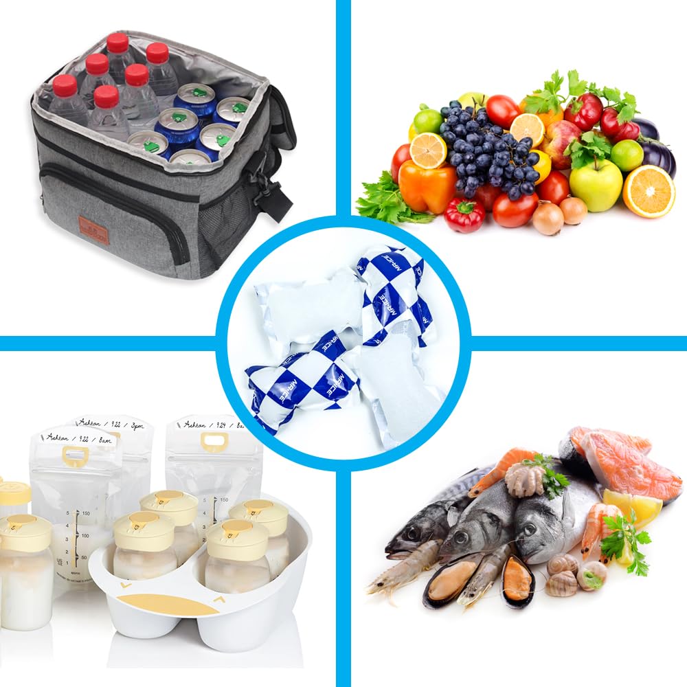 - Dry Ice Packs for Shipping - Advanced ice absorb water cooling for keep food fresh and beverage cold, provide cooling effects for transportation of foods and seafood, etc. Use in ice bag or lunch box to carry food, snacks, drinks, stays cool long time during outings.