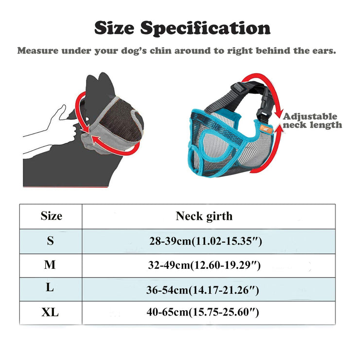 - MULTIPE SIZES: The dog muzzle mesh mask comes in 4 sizes and can be adjusted to be used for all dogs including tiny and giant breeds. Measuring your dog's body measurements before ordering this item in order to avoid the unsuitable purchase.