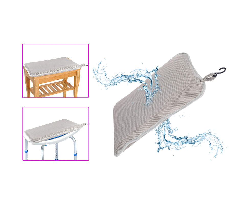 - Shower Bench Seat Cushion made of 3D mesh fabric material and Breathable foam inside, offering comfort and support when sitting transfer bath bench or shower chair.