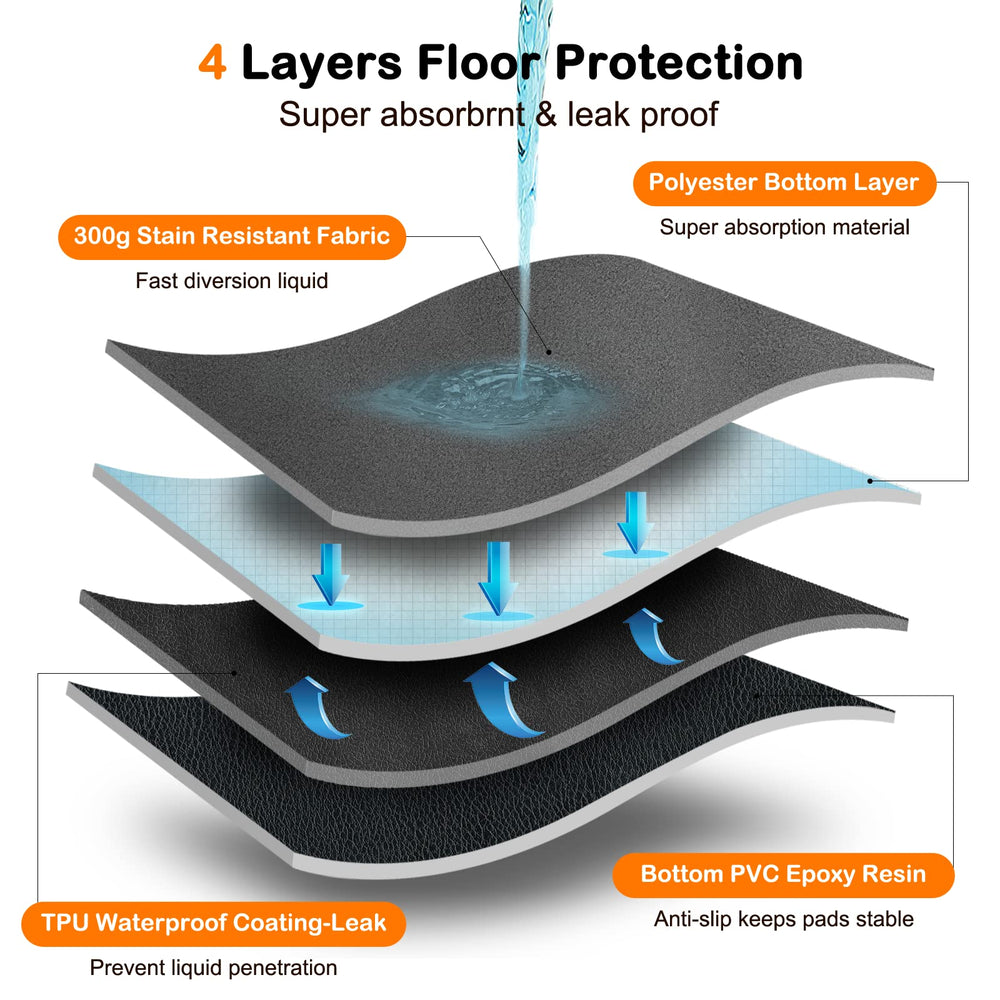 - Fast Absorption & Leakproof4 thickened layers prevent urine outflow and dry faster. The super absorbent top layer can quickly absorb urine and odor within 2-3 minutes. Our whelping pads can effectively prevent urine from leaking to the floor, no leakage and no smell, keep puppies and floor clean and dry.
