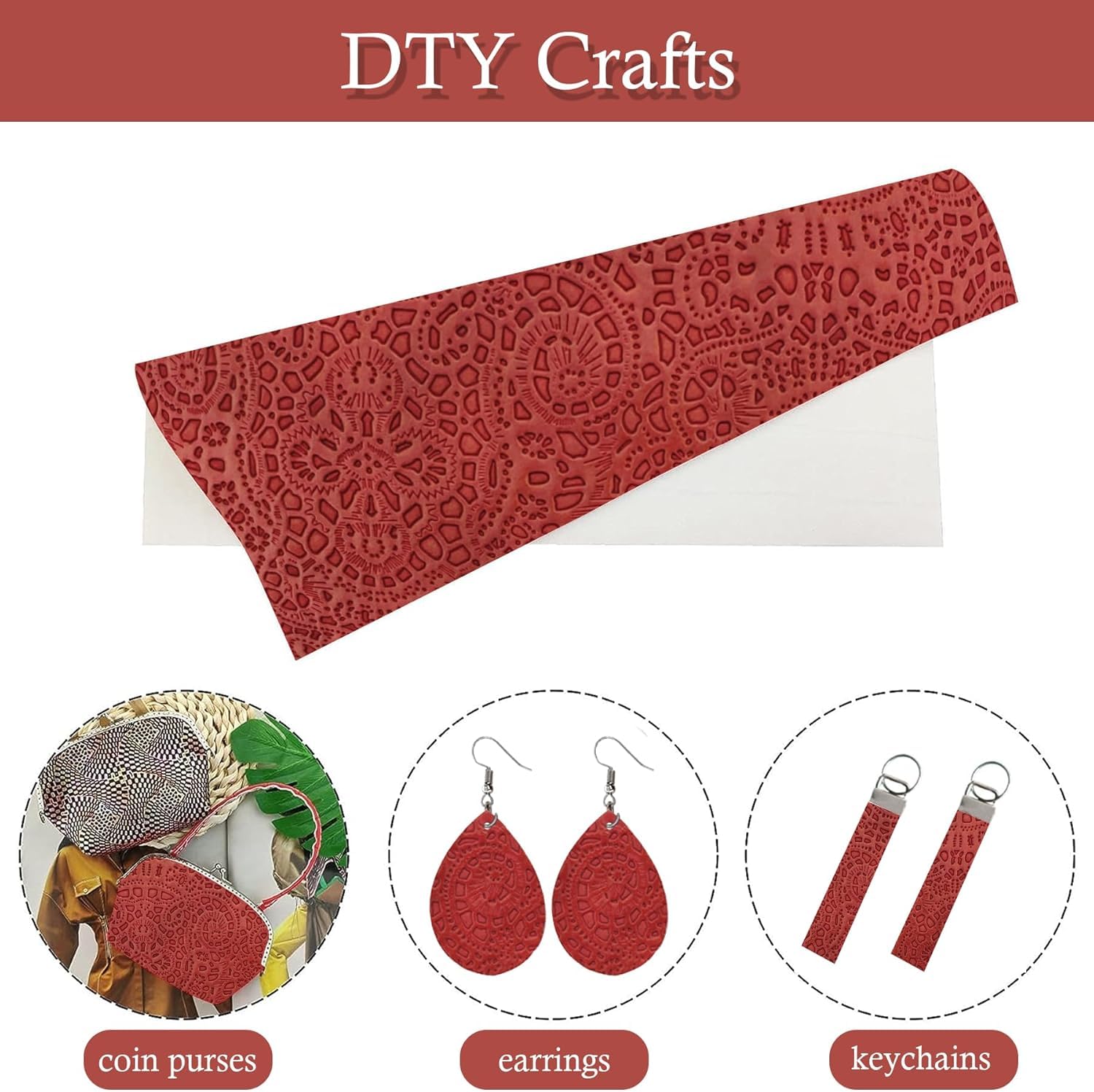 - Original Fabric – 7 Pcs Embossed Faux Leather Sheets for Earrings Purses Making, 8.2 X 11.8 with Flower Leaf Embossed Textured Synthetic Fabric Sheets for DIY Bows Wallet Sewing Crafts (Red Mechanical) by SHUANGART
