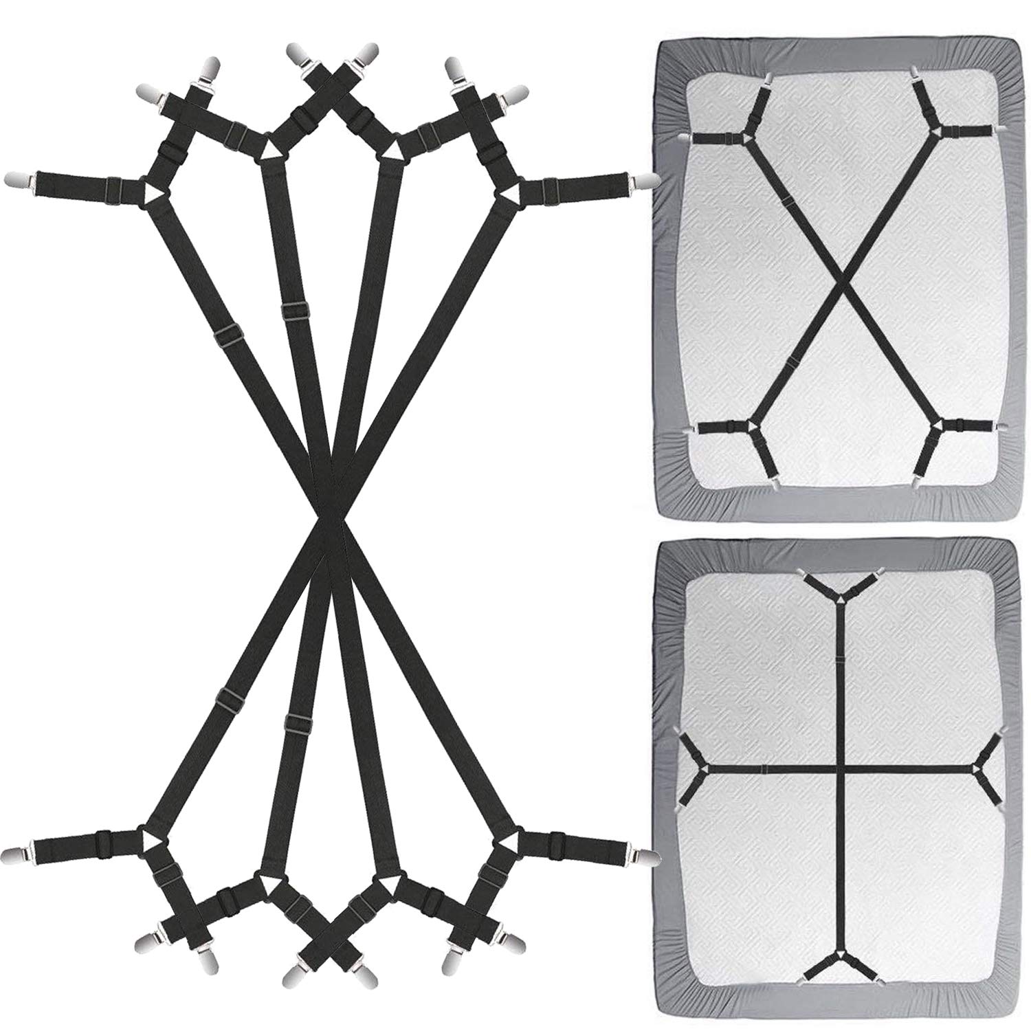 - Original Sheet Fasteners – Bed Sheet Clip Straps - 2 Way Adjustable Crisscross Sheet Corner Holder Straps Gripper Elastic Sheet Band Mattress Straps Fasten Suspenders(2 Set/4Pcs, Black) by Siaomo