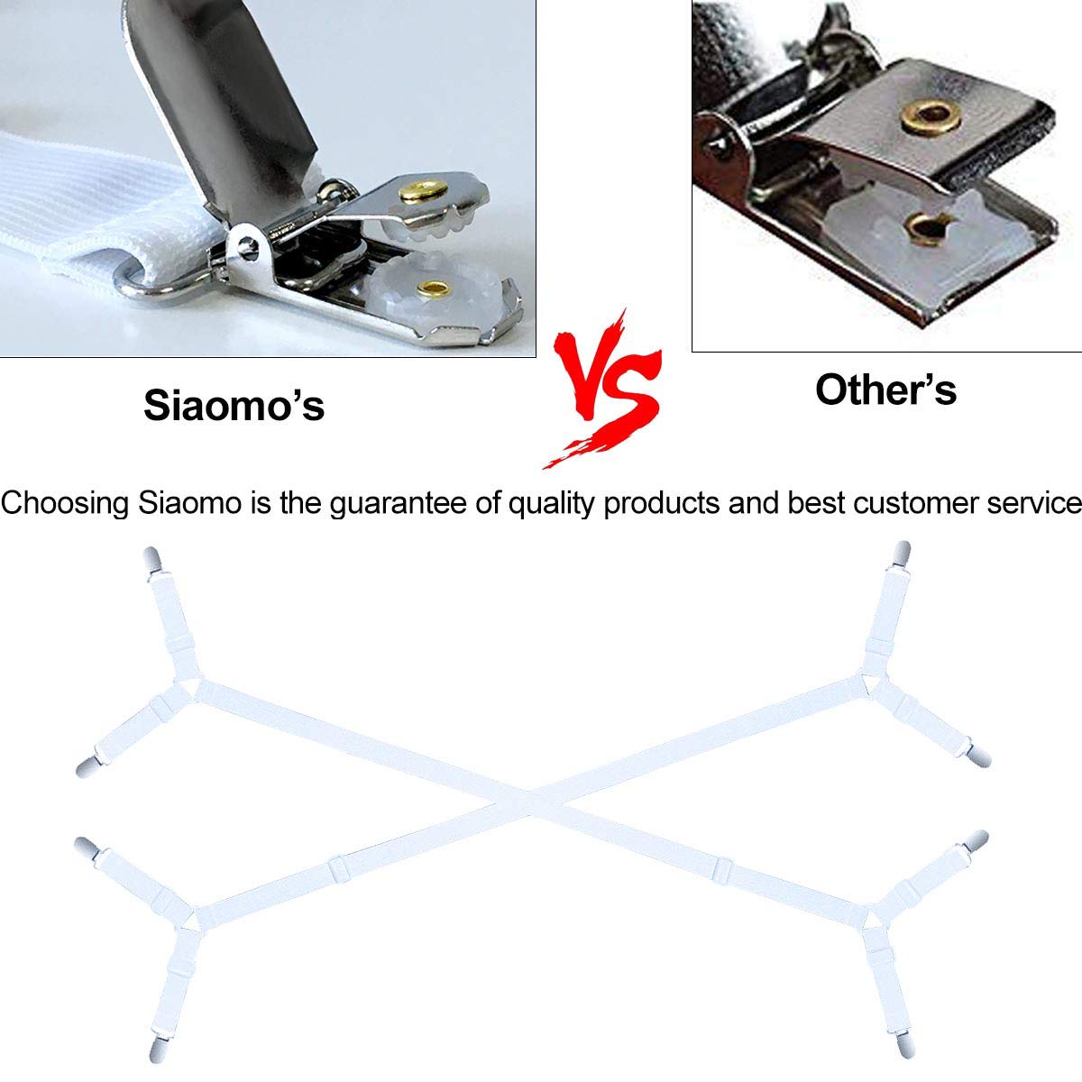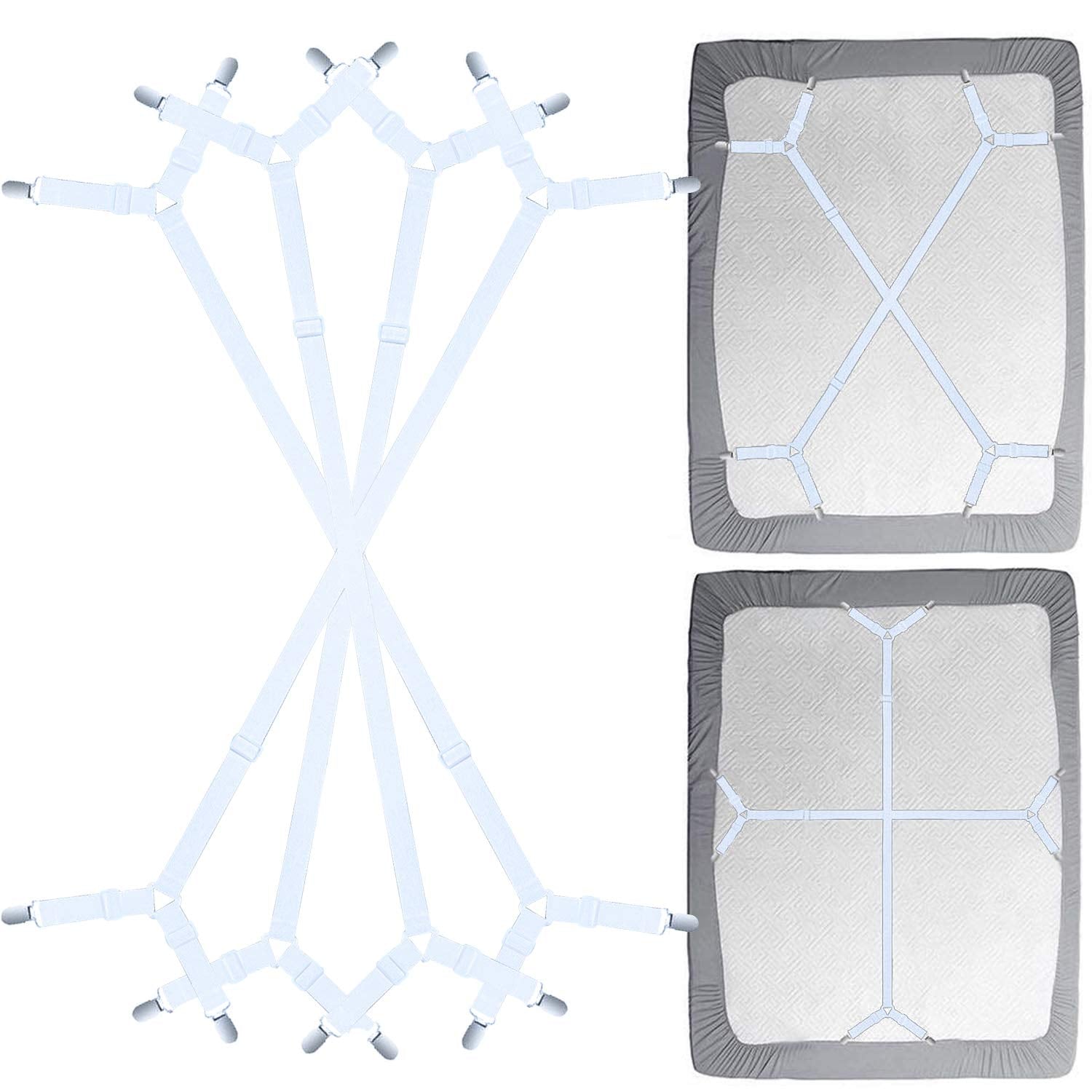 - Original Sheet Fasteners – Bed Sheet Fasteners Straps - 2 Way Adjustable Crisscross Sheet Corner Holder Straps Clips Gripper Elastic Sheet Band Suspenders Fasteners(2 Set/4Pcs, White) by Siaomo