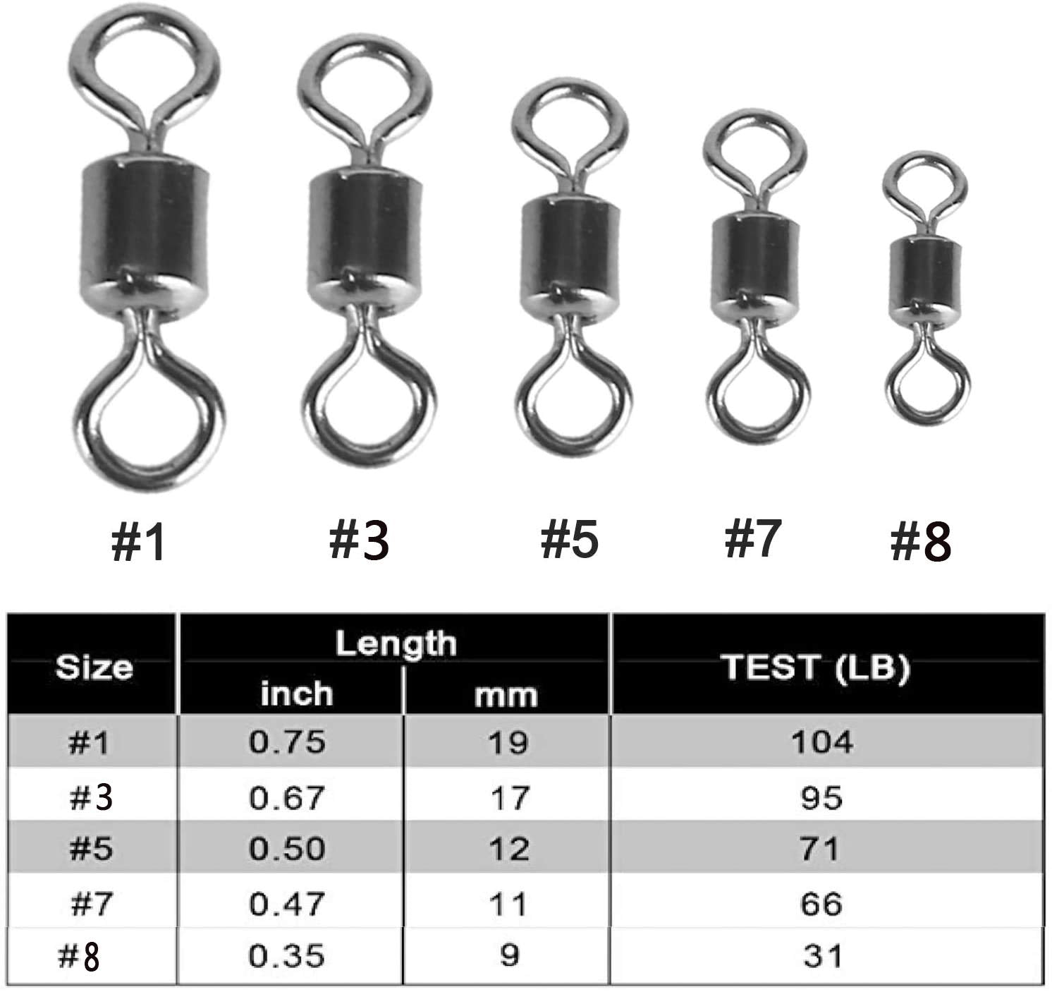 - DIFFERENT SIZES TO MEET ALL YOUR EXPECTATIONS: We got #1 #3 #5 #7 #8, 5 different sizes, and their high strength from 31lb to 104lb. They work great for coil building, offs hore fishing and bass fishing, etc