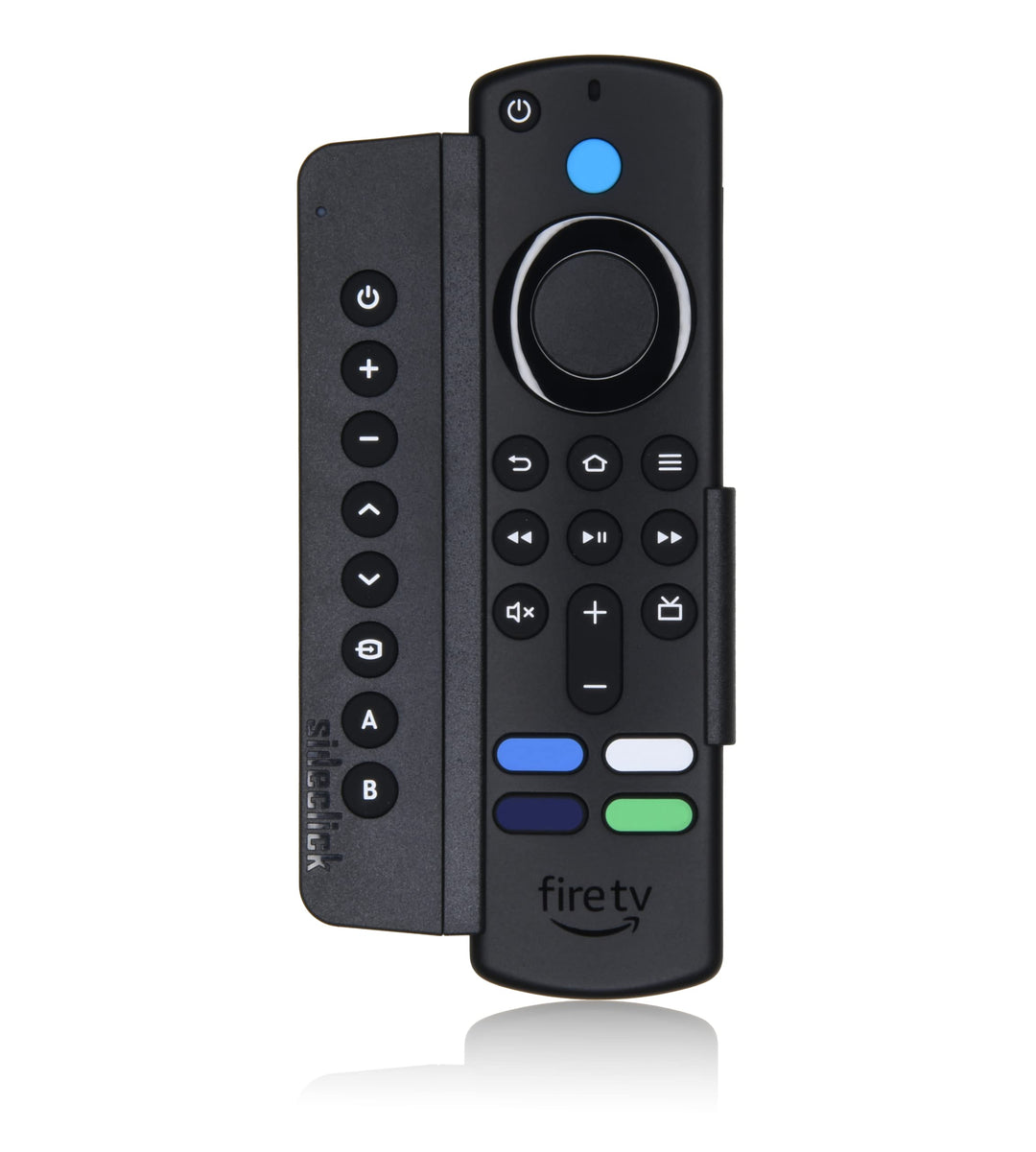 - Slim universal remote attachment for Amazon fire TV streaming player.Sideclick is compatible with IR remotes.