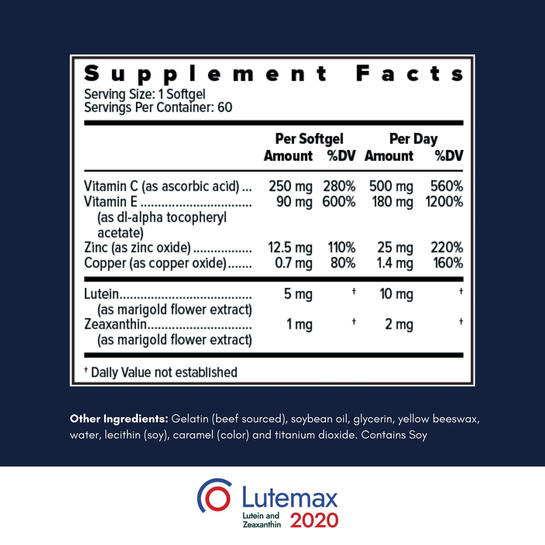- Original Lutein – AREDS2 Based Eye Vitamin-Mineral Supplement (120 ct. 60 Day Supply) - AREDS2 Based Supplement for Eyes - Low Zinc Formula - Eye Vision Supplement and Vitamin by Sight Guardian