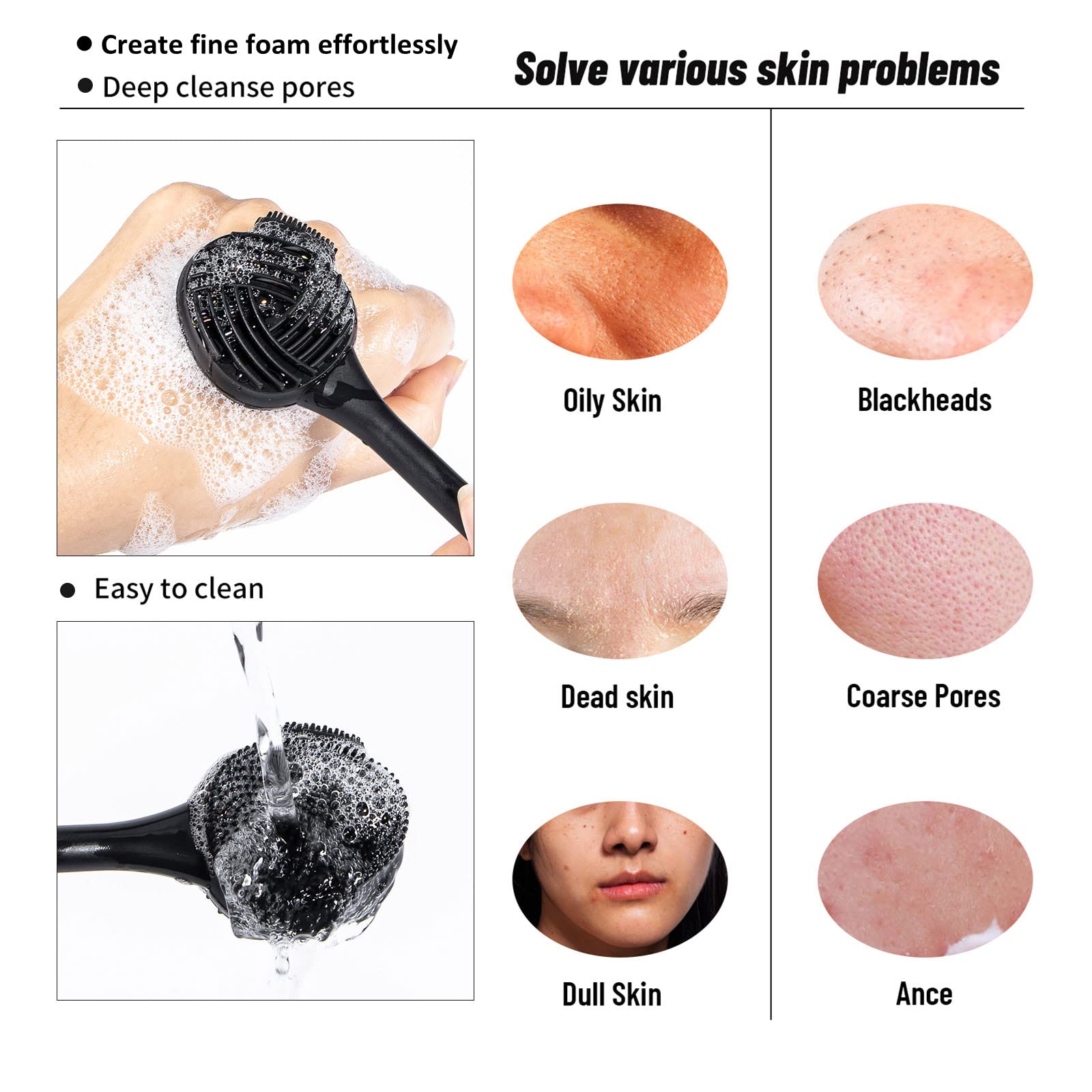 - 4 in 1 FACIAL BRUSH - These silicone facial cleansing brush have a unique double-side & double-head design, one side is silicone brush, it's for face and nose cleansing & exfoliating; the other side is for face massage; The other head is a flexible silicon spatula for application, no more get your hands dirty, suitable for mud, cay, charcoal mixed and other products