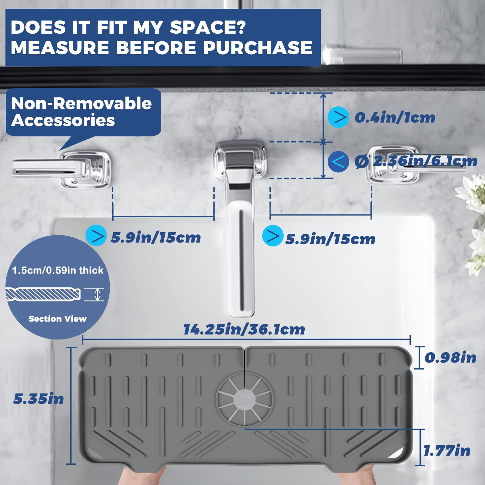 - Original Kitchen Sink Accessories – Silicone Faucet Handle Drip Catcher Tray Mat, Silicone Faucet Mat Dish Soap Sponge Holder for Kitchen Sink Accessories Gadgets, Drying Mat for Kitchen Counter Bathroom Kitchen Sink Splash Guard -Grey by BFONS