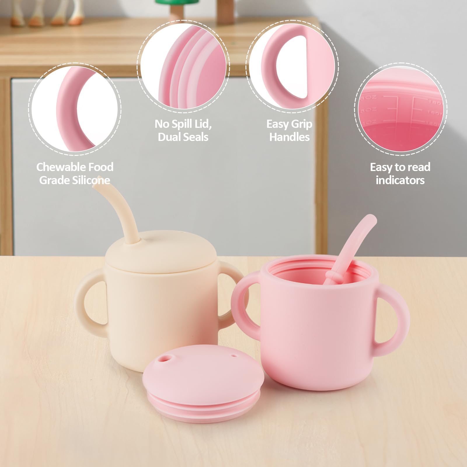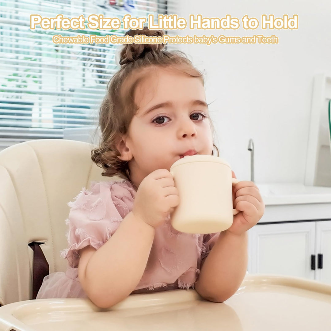 - Smooth edges: The edge of the training cup is smooth, Soft silicone protects baby's developing teeth.