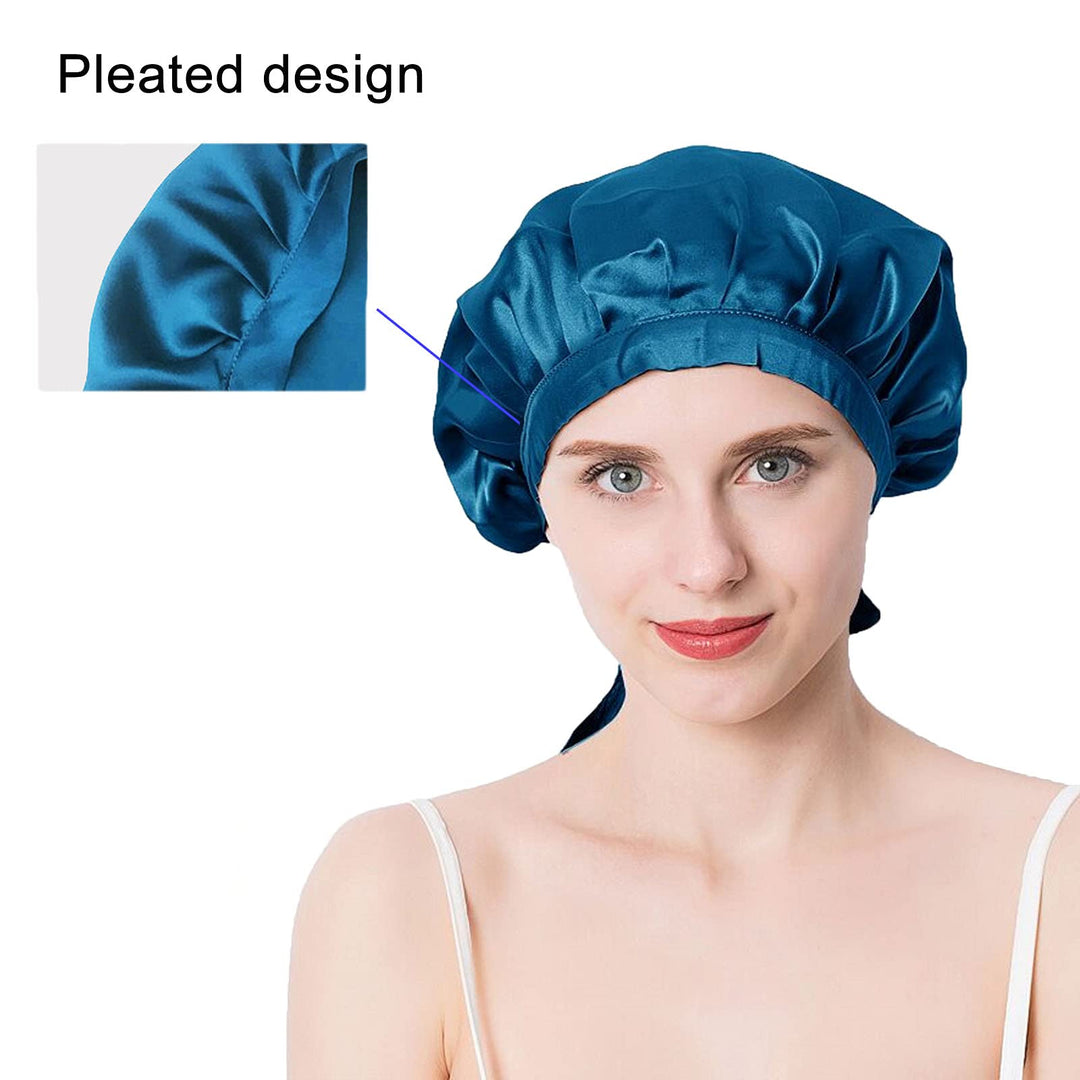 - Original Shower Caps – Silk Bonnet Satin Bonnet for Natural Hair Stretchy Mulberry Silk Sleep Cap for Women Long/Curly Hair Care Silk Night Bonnet with Adjustable Ribbons Smooth Soft Breathable Sleep Cap (Blue) by SOFISO