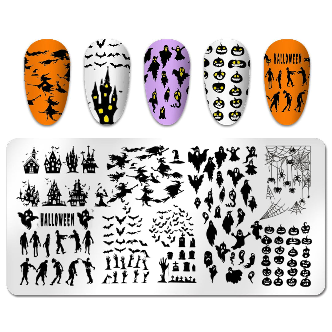 - Original Templates – 6pcs Nail Stamping Plate Halloween Pumpkin Bats Flame Nail Stamp Nail Stencils Stamping Plates For Nails DIY Nail Accessories by SILPECWEE