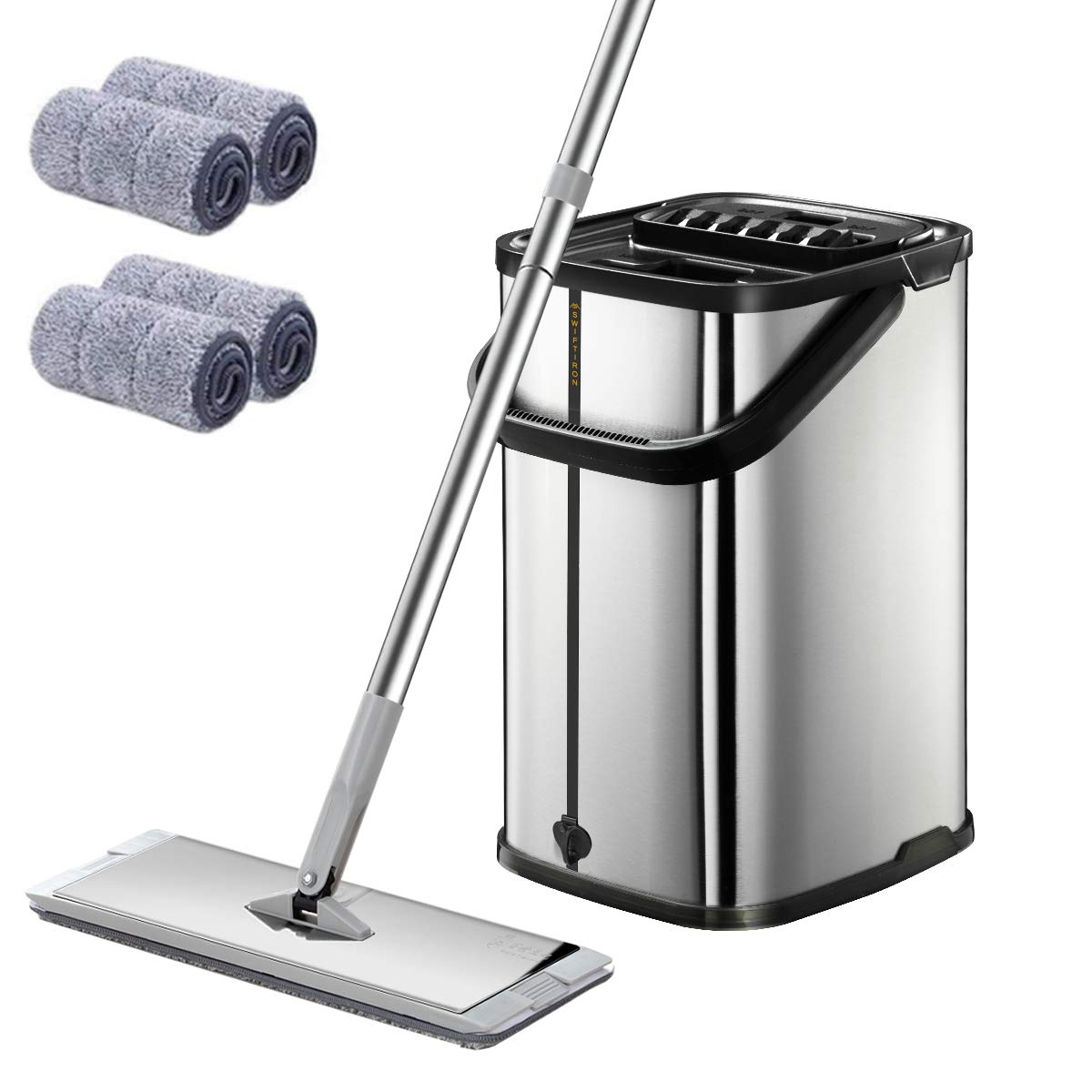 - ¦Stainless Steel Bucket Mop and Handle: The stainless steel flat buckets for cleaning has two systems, which can separate wet and dry,two separate spaces,won't dirty your hands,the length of mop handle can be adjusted according to the suitable position of individual, There are 4 handles,you can also carry the mop and bucket to cleaning the place you want to go, the mop board is made of stainless steel,easy to use practical and very fast cleaning