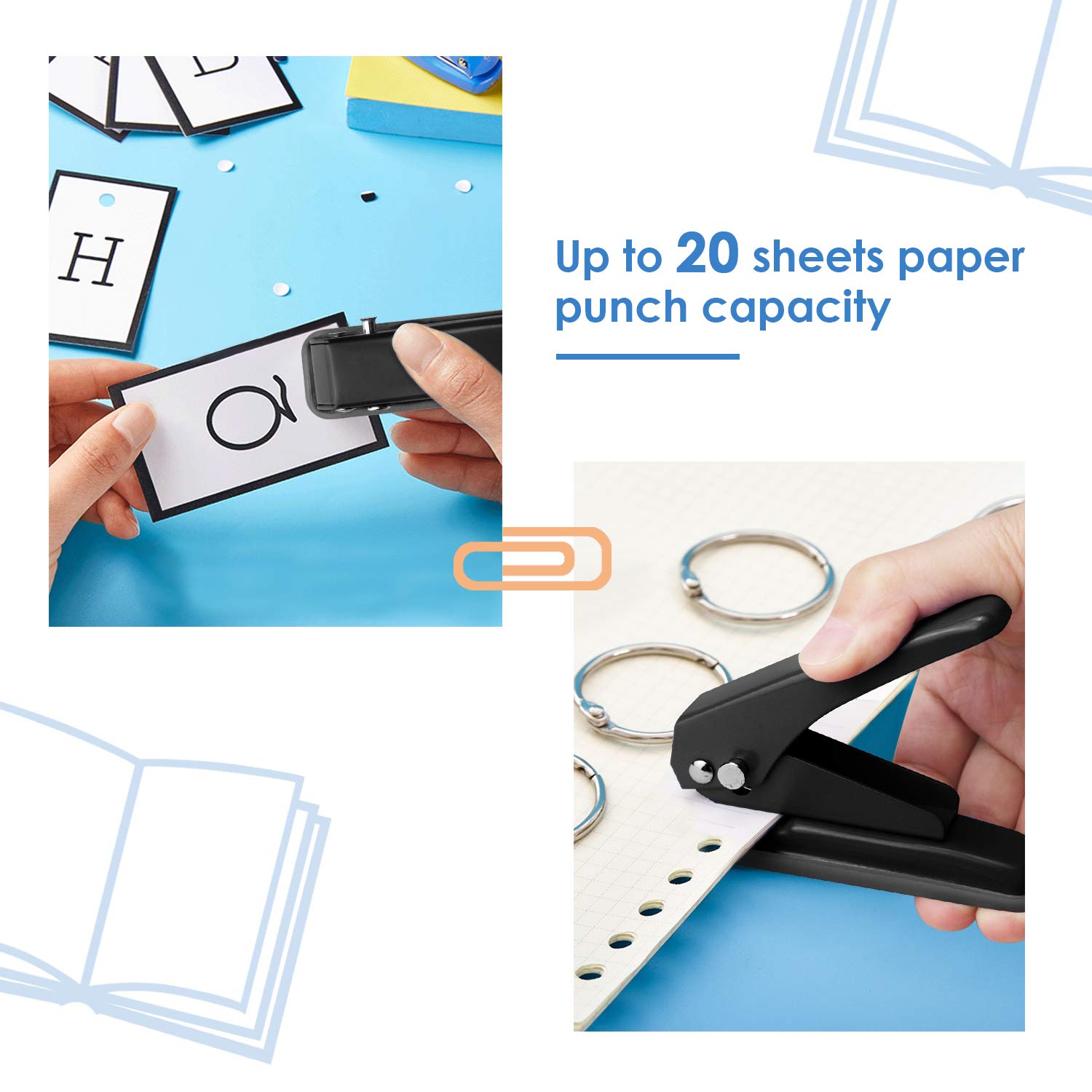 - Original Punches – Single Hole Punch 1 Hole Puncher Heavy Duty Paper Hole Punch, 20 Sheet Punch Capacity, Whole Puncher Hand Craft Hole Puncher for Paper, Chipboard, Index Cards, Card Stock and Art Project, Black by Ocadux
