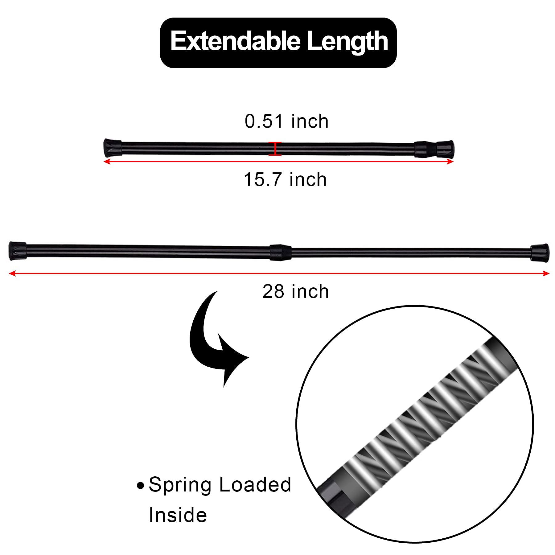 - Extendable length - twist the rod to adjust the length from 15.7 to 28 according to the length of your cupboard, closet, refrigerator or other place where need bars