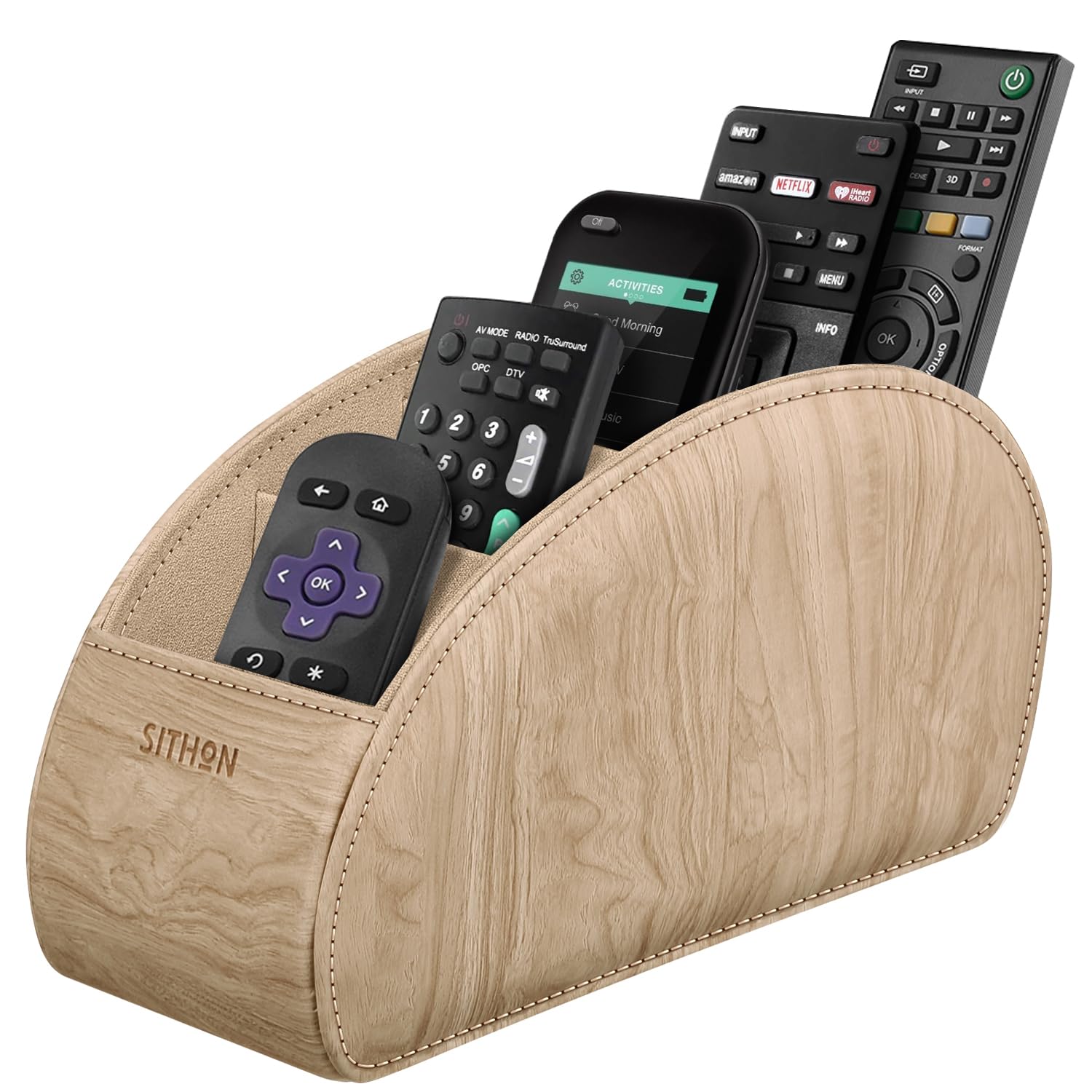 - Original Supply Organizers – Remote Control Holder with 5 Compartments - PU Leather Remote Caddy Desktop Organizer Store TV, DVD, Blu-Ray, Media Player, Heater Controllers, Woodgrain Khaki by SITHON