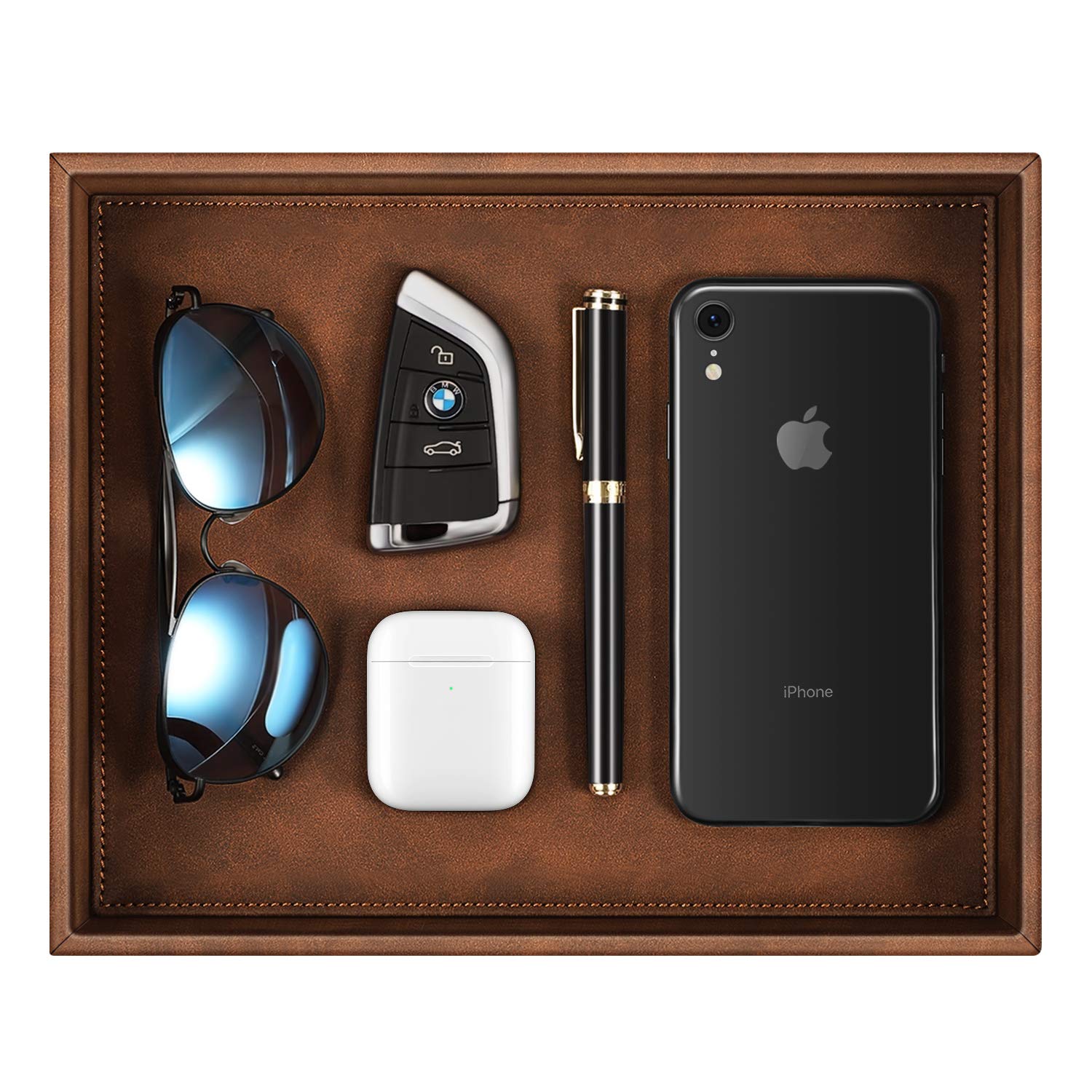 - Original Jewelry Trays – Valet Tray Desk Organizer, PU Leather Catchall Tray Bedside Vanity Tray Nightstand Caddy Coin Box Key Jewelry Storage Organizer, Brown by SITHON
