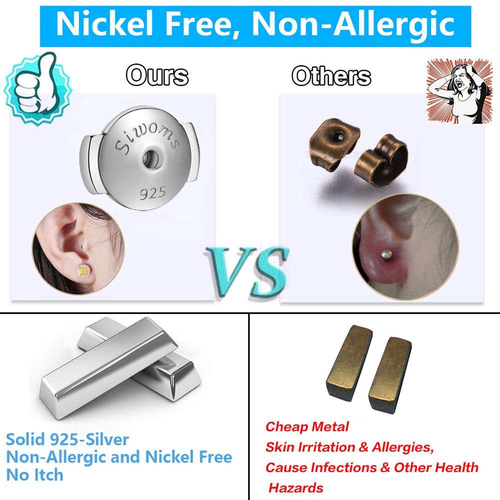 - NON-ALLERGENIC & NON-IRRITATINGSolid 925 Sterling Silver Locking Earring backs, Keep Duarable and Shining. Nickel Free, Hypoallergenic & Non-irritating.
