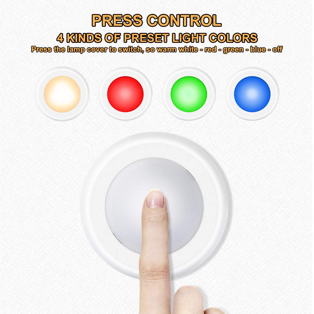 - Remote & Manual ControlLED closet lights are equipped with remote controls, can set switches/brightness/color/lighting mode and timing. Pressing the lamp shade can turn the light ON/OFF. You can also switch the lights Colors by short pressing the lampshade or adjust the brightness by long pressing the lamp shade.