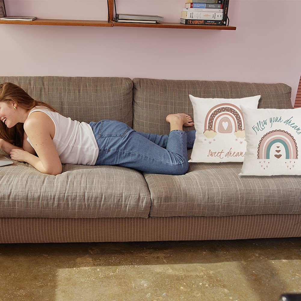 - Original – Boho Rainbow Throw Pillow Covers, 18 x Inch Theme Cases Cotton Linen Pillowcases Square Cushion Case for Baby Nursery Bedroom Sofa Home Decor Set of 4 (Rainbow) (BA-08) by SKIING