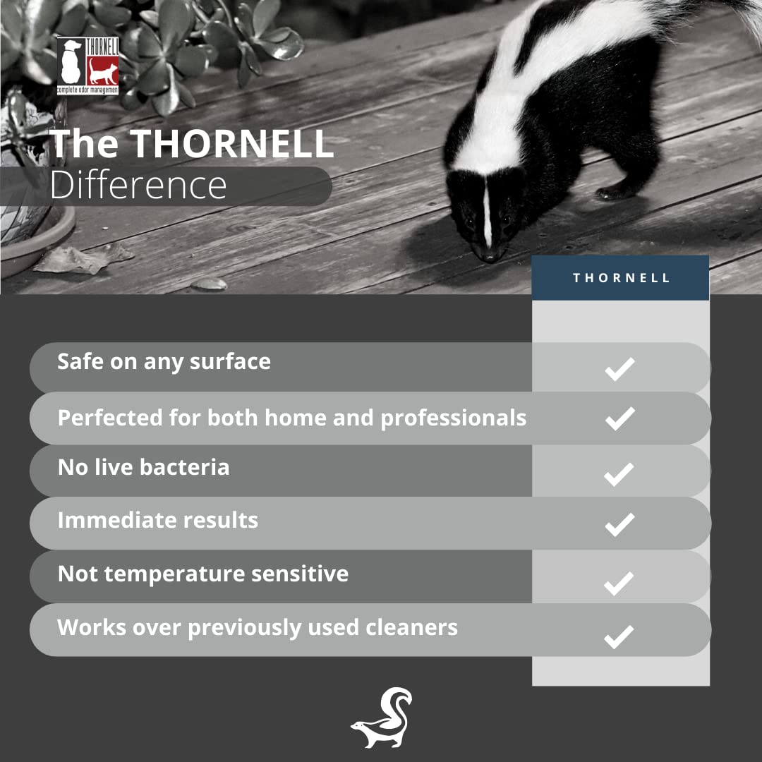 - Use What Your Veterinarian Uses: Thornell is the #1 provider of pet odor spray products to the veterinary industry in North America. Use what the pros use! This powerful skunk odor eliminator spray can be used safely on carpets, the car, clothes, pets & more.