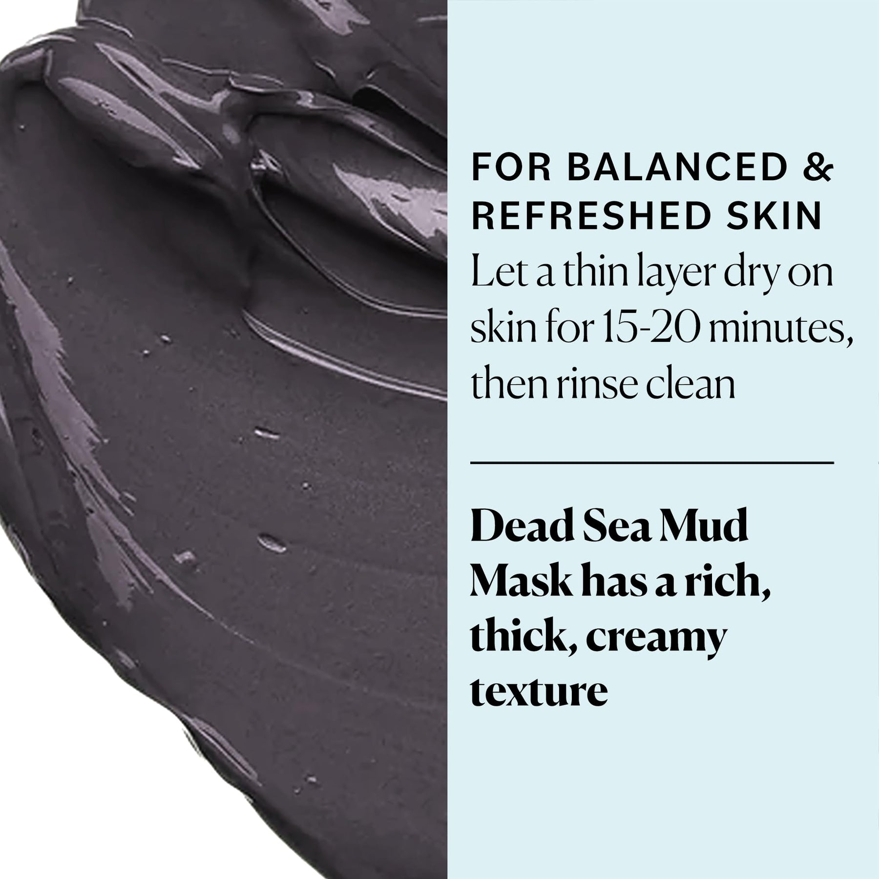 - Deep Cleansing Mask: Made with Dead Sea mud, this non-drying mask gently cleanses away impurities without disrupting skin's natural moisture balance to leave skin feeling clean and refreshed but never stripped