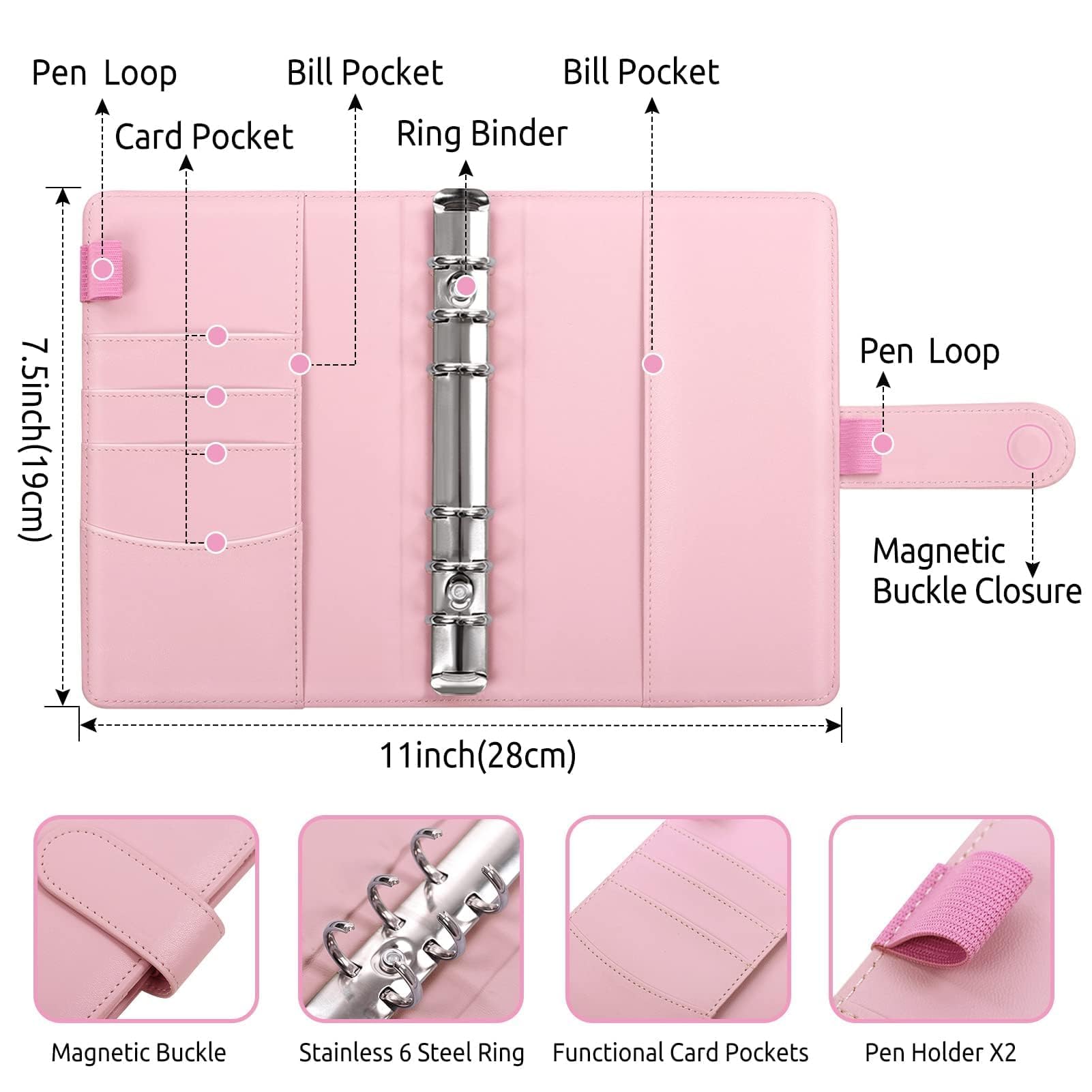 - Easy to Carry:A6 Binder Budget Envelopes System fits in your handbag, backpack,suitcase or desk;A6 ring binder suitable for all standard A6 size inner pages.